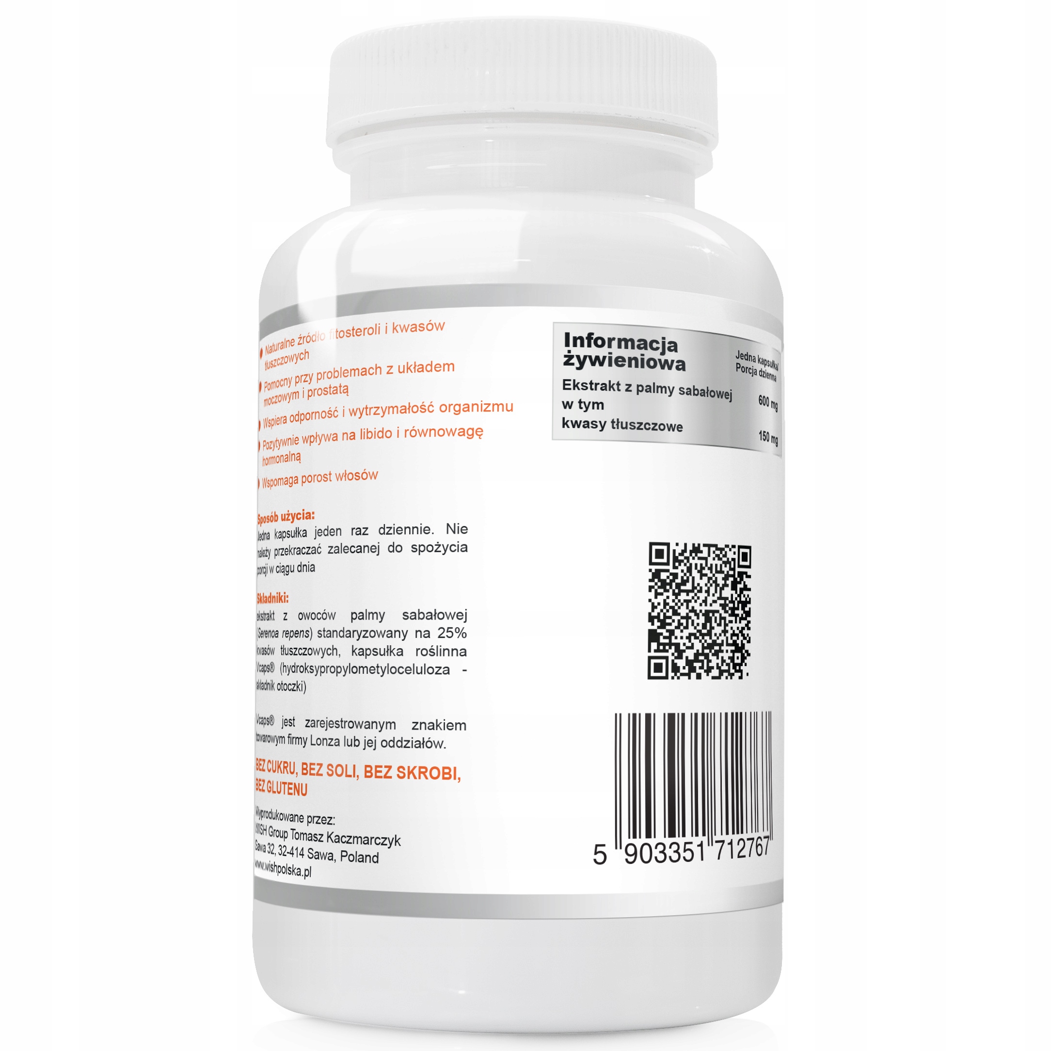 ІНГРЕДІЄНТИ: Екстракт плодів пальми пальмової (Serenoa repens), стандартизований до 25% кислот, рослинна капсула Vcaps® (гідроксипропілметилцелюлоза - компонент оболонки)