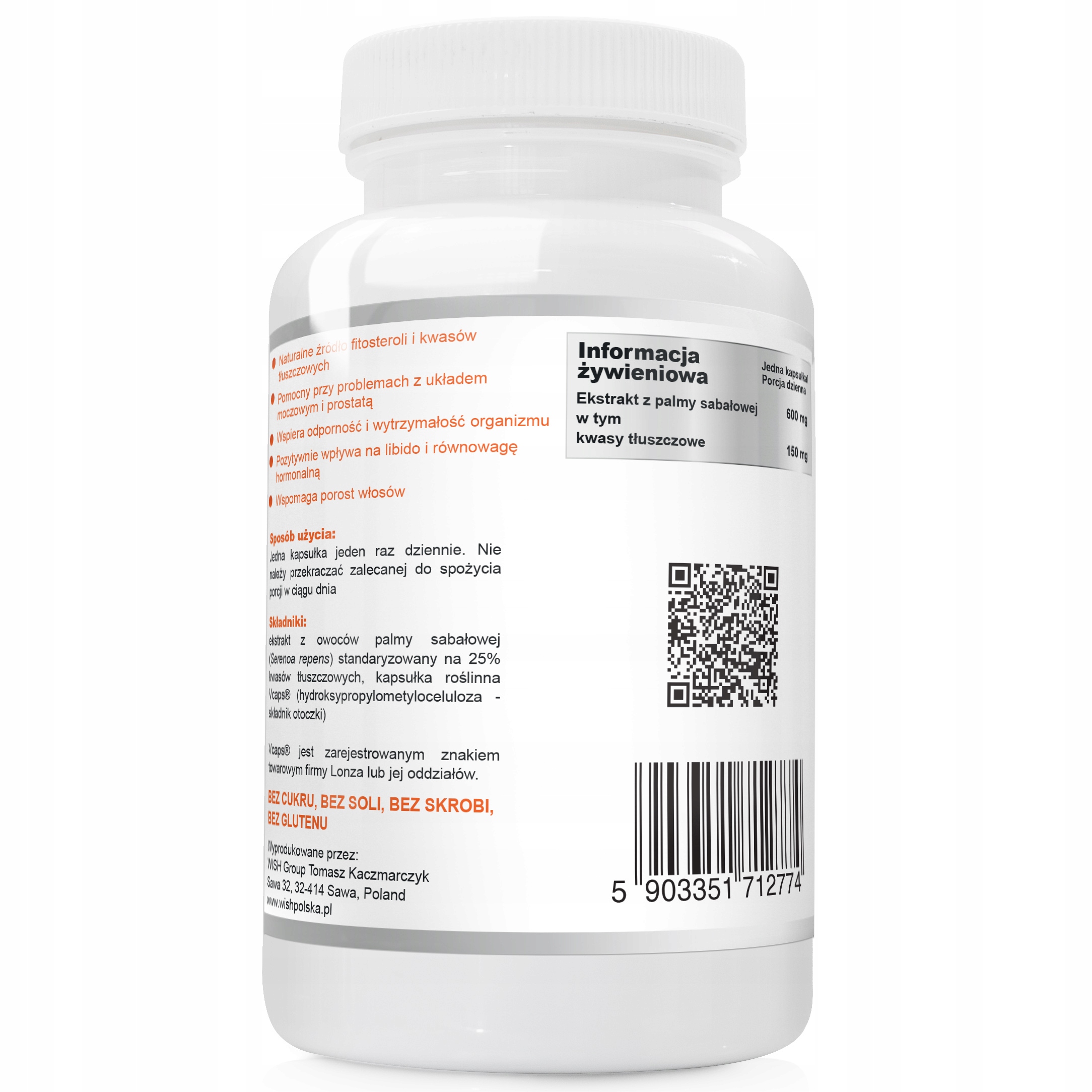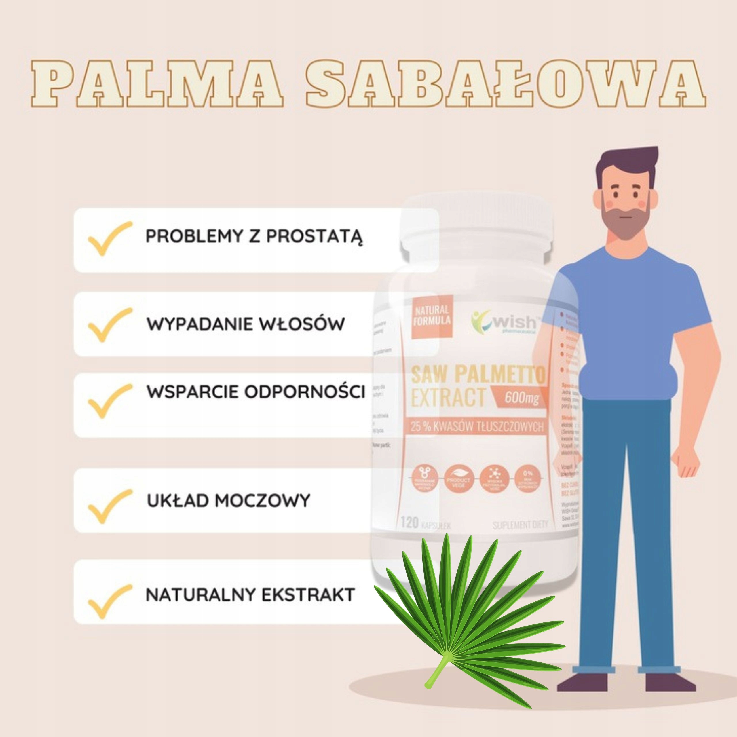 Висококонцентрований препарат, що містить екстракт пальметто, рослини, яка позитивно впливає на проблеми простати, позитивно впливає на проблему волосся втратаособливо у чоловіків. Це багате джерело жирних кислот і філостеролів, які допомагаютьзнизити рівень холестерину в крові.