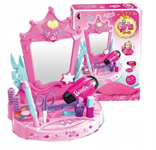 і якщо так, у її розпорядженні повністю власний, рожевий або синій та повністю обладнаний салон домашньої краси? Наш набір зустрічає ці дівочі мрії з пропозицією прекрасного туалетного столика, який прискорить серцебиття кожного маленького сховища. Не менш важливо, що набір повністю безпечний для дитячої шкіри, оскільки він не містить косметики. Тільки прикидається їх, що змушує дитину повністю використовувати уяву.