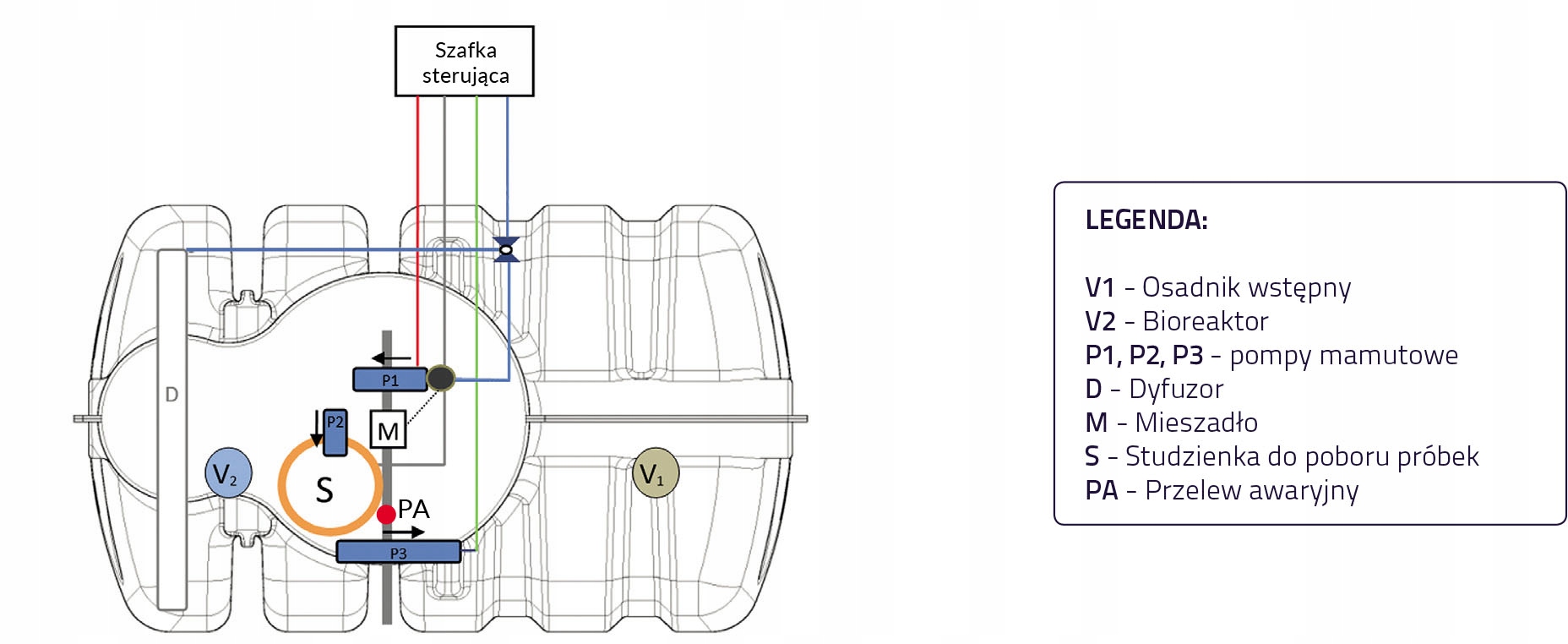 SBR Technology, що реалізується на основі, включаючи O -рідинні грядки, що характеризується дуже високою стійкістю до гідравлічного перевантаження, що гарантує правильний перебіг процесів очищення в будь -яких умовах (сімейні збори, перерви на відпустку). Плюшева родовище, що підтримується активним осадом у послідовній системі, закінчує процес очищення стічних вод.
