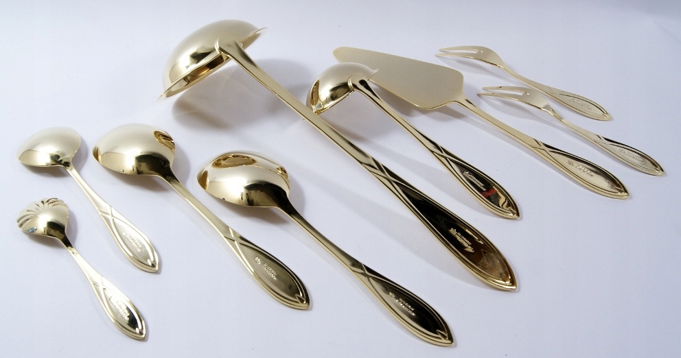 SBS SOLINGEN BESTECKE - Красиві, старі позолочені столові прибори 23/24 каратного золота, набір на 12 осіб, як на фотографіях,