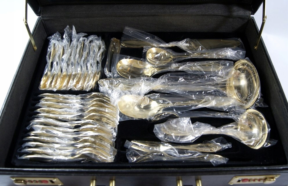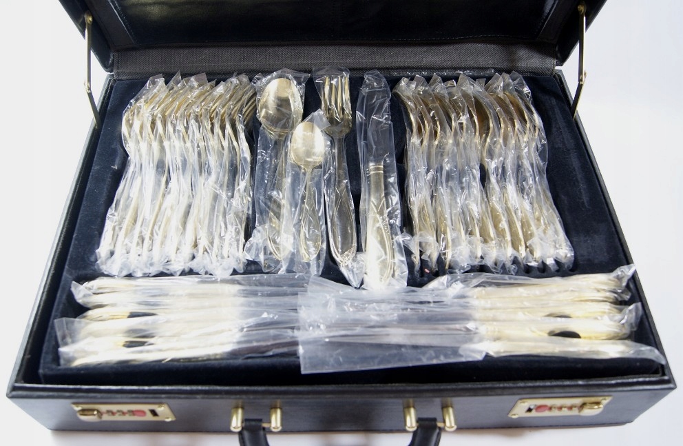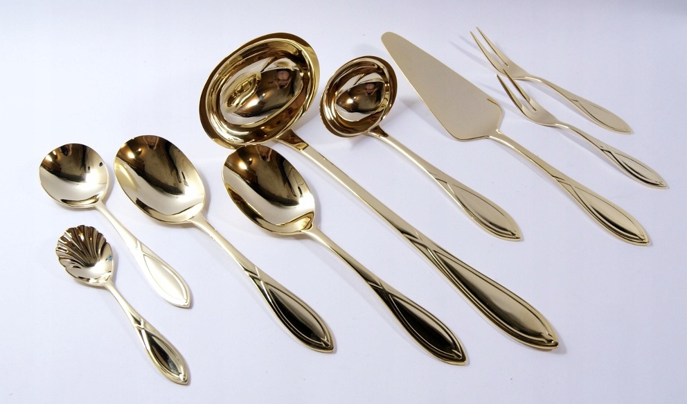 SBS SOLINGEN - КРАСИВИЙ, СТАРОВЕ ПОЗОЛОЧЕНЕ 23/24 К. СТОЛОВІ ПРИБОРИ - 70 шт