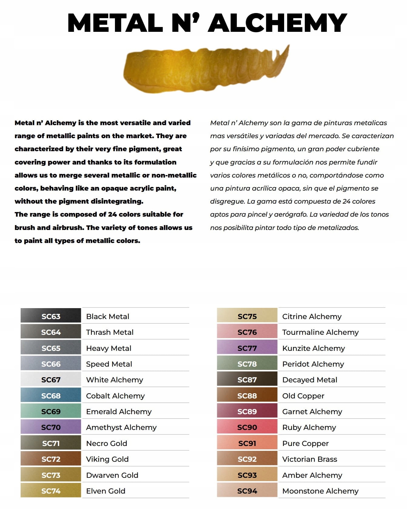 Акрилові фарби Scale75 Metal N' Alchemy є найбільш універсальним і різноманітним асортиментом фарб металевих кольорів на ринку.