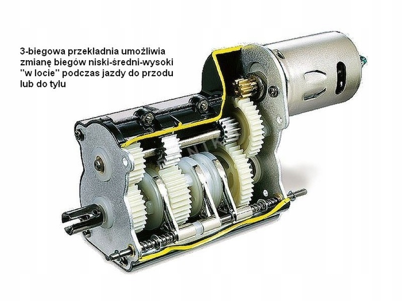 - 3-ступінчаста передача 32,49:1, 17,76:1, 10,66:1 (перемикання передач через трансмітер)