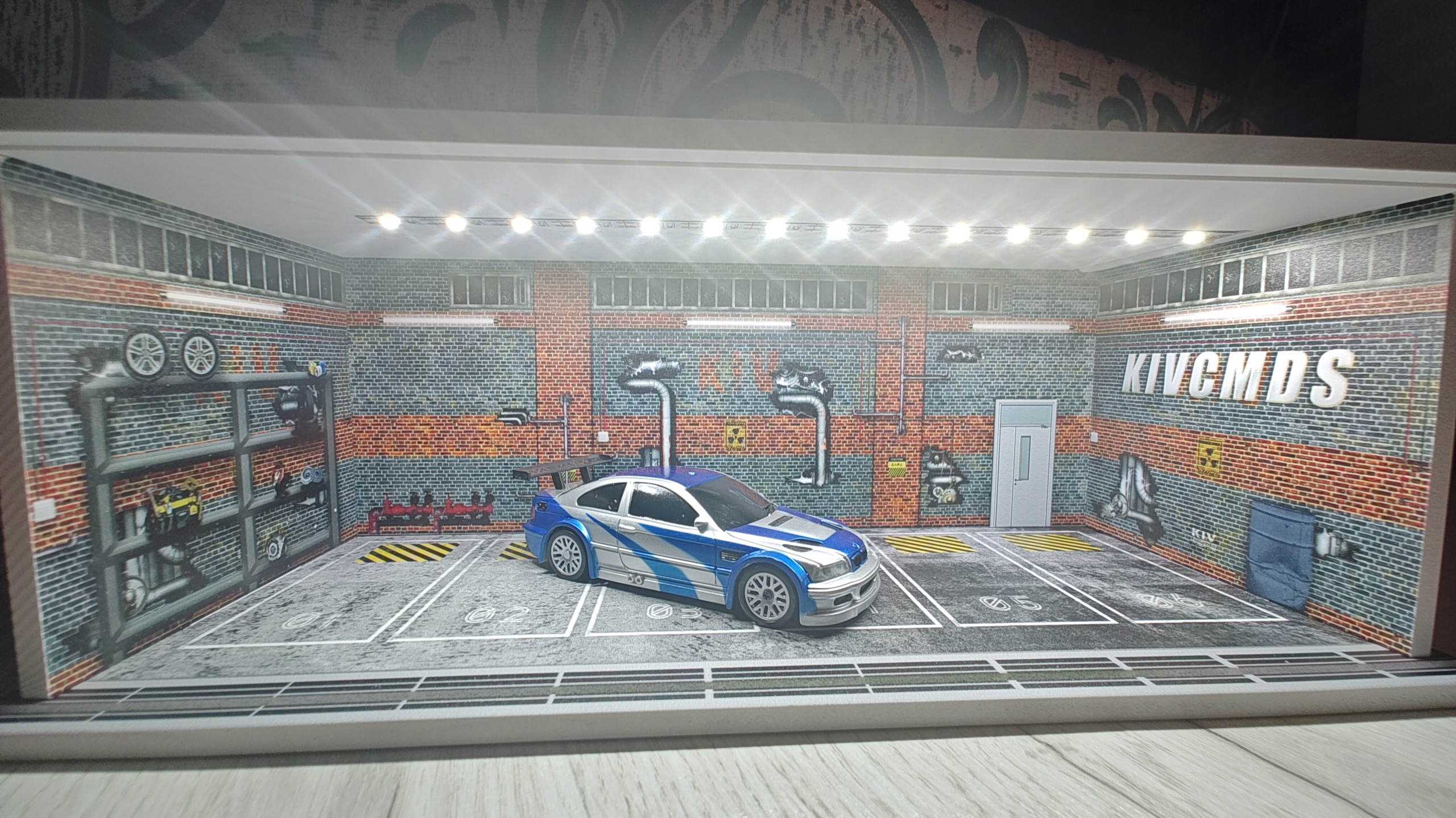 Гаражна сцена для колекціонерів для автомобілів RC або інших моделей автомобілів. Ідеально підходить як подарунок для дитини чи дорослого, щоб добре припаркувати моделі автомобіля. Гараж міцно виготовлений і найголовніше має цікаву графіку та світлодіодне освітлення білого кольору для з'єднання з USB -кабелем. Він може бути підключений до електричної розетки, телевізора, консолі тощо. Розміри гаража: 30 на 11 см завширшки та глибина 11 см. Хороший упакований ідеально підходить для подарунка. Також входить до заміни переднього скла з оргскла, щоб автомобілі моделі не пили. Автомобіль за шкалою 1:43 від фотографії не входить у пропозицію СКВ лише для ілюстративного