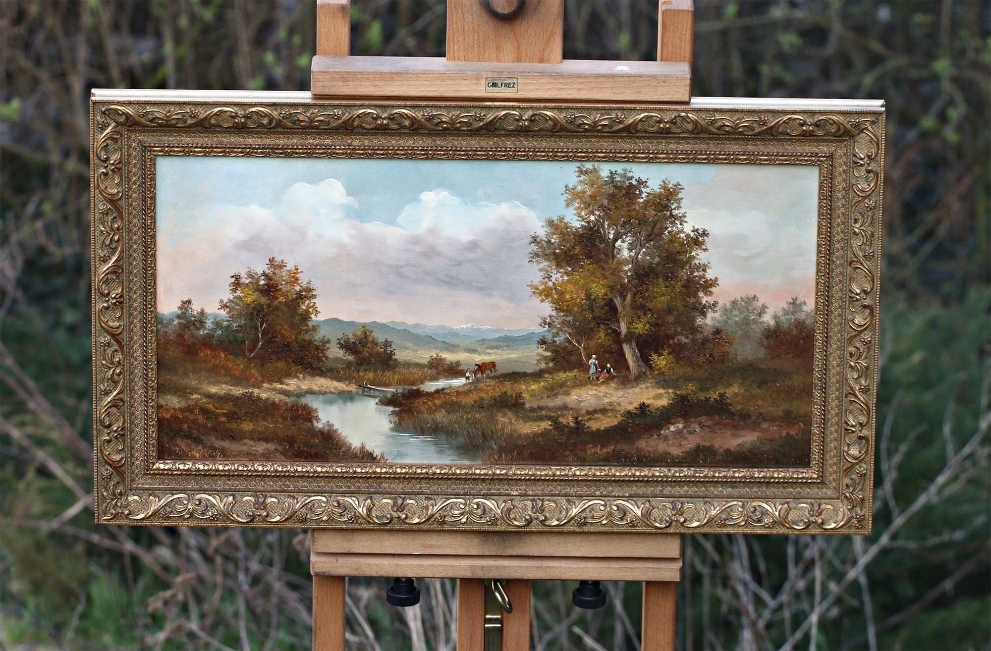 SCENA PRZY RZECE ELISABETH PAETZ-KALICH (1925) STARY OBRAZ OLEJNY PIĘKNY