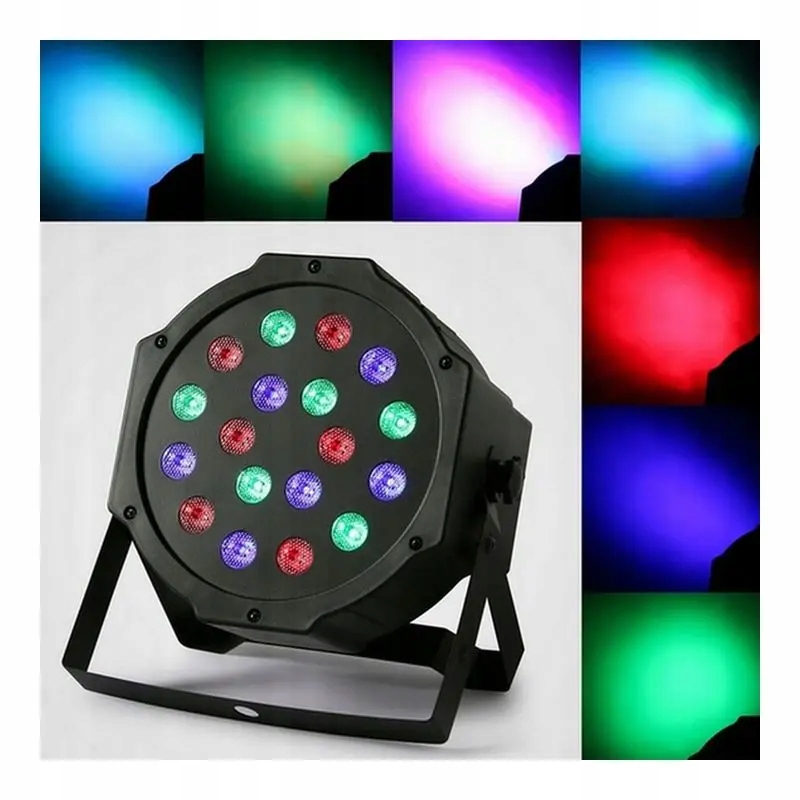 світлодіодні фари з світлими ефектами - DJ -лампа оснащена 18 світлодіодними світлодіодами WRGB (6 х червоний, 6 х синього кольору, 6 х зеленого кольору) та багатоколеним, поєднуючи легкий ефект, що може підтримувати статичне кольори, розважальний, поступовий зміна та стрибки.