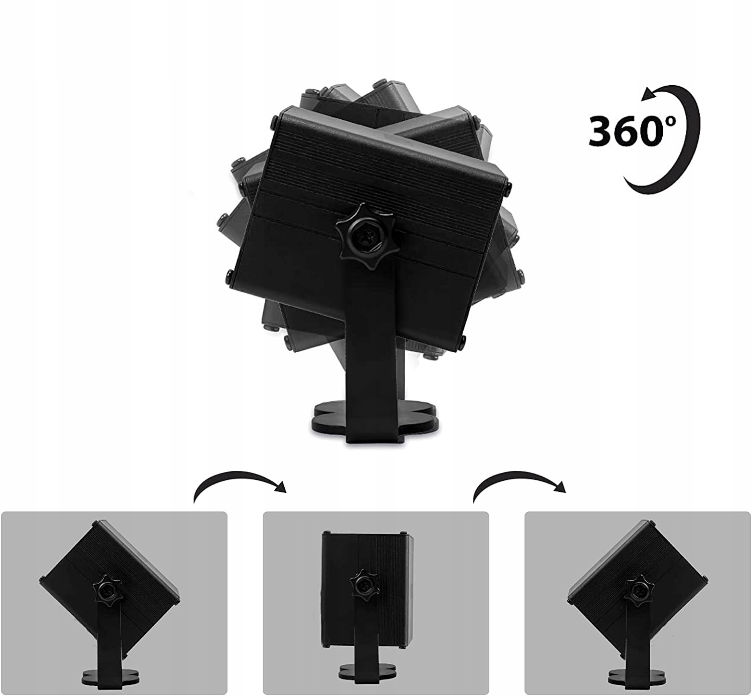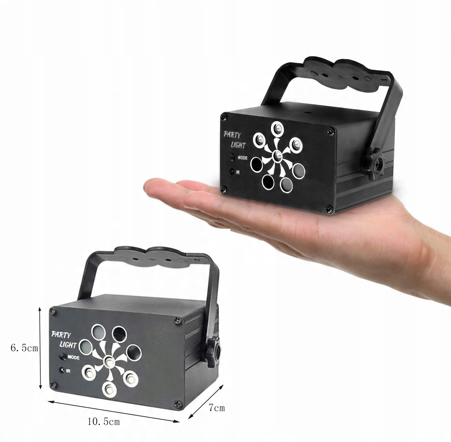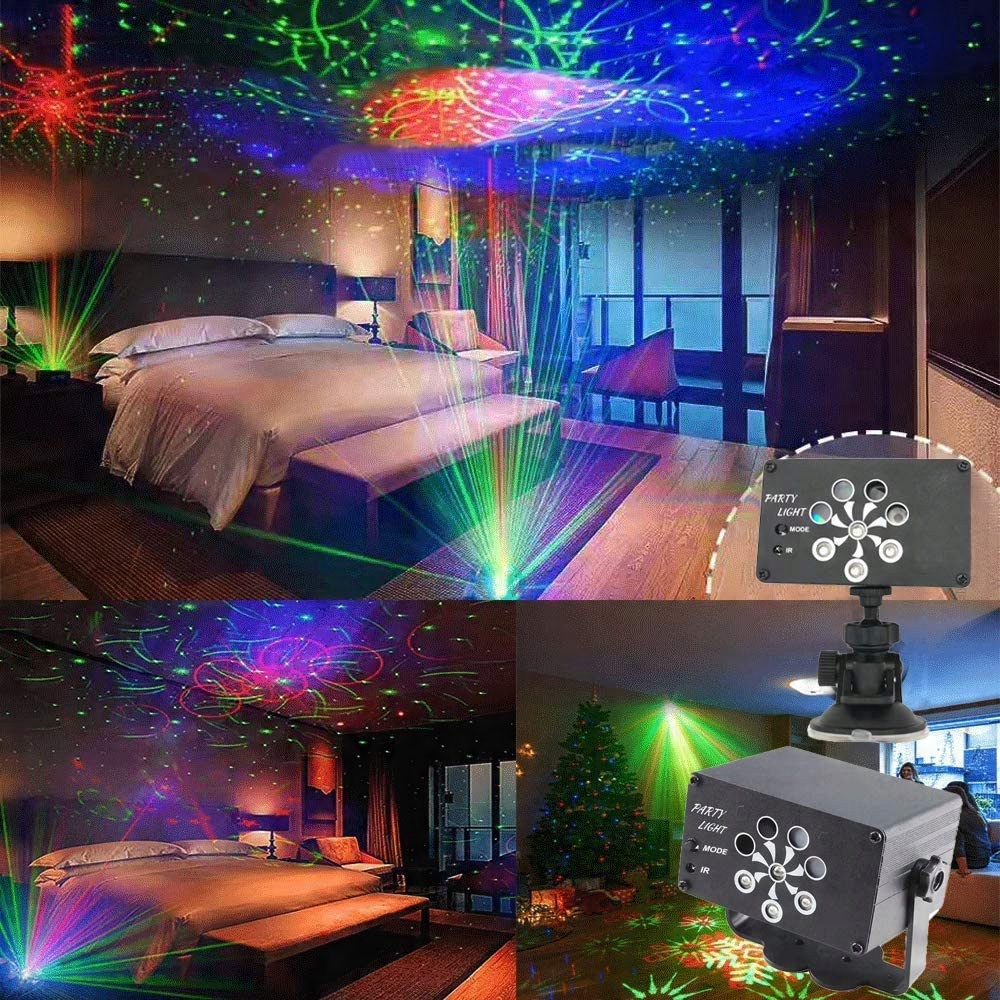 Стробоскоп має 8 лінз джерела (червоне та зелене та світлодіодне підсвічування), 240 візерунків, колір і швидкість змінюються відповідно до звуку/ритму музики. Дивовижне поєднання робить ніч барвистішою.
