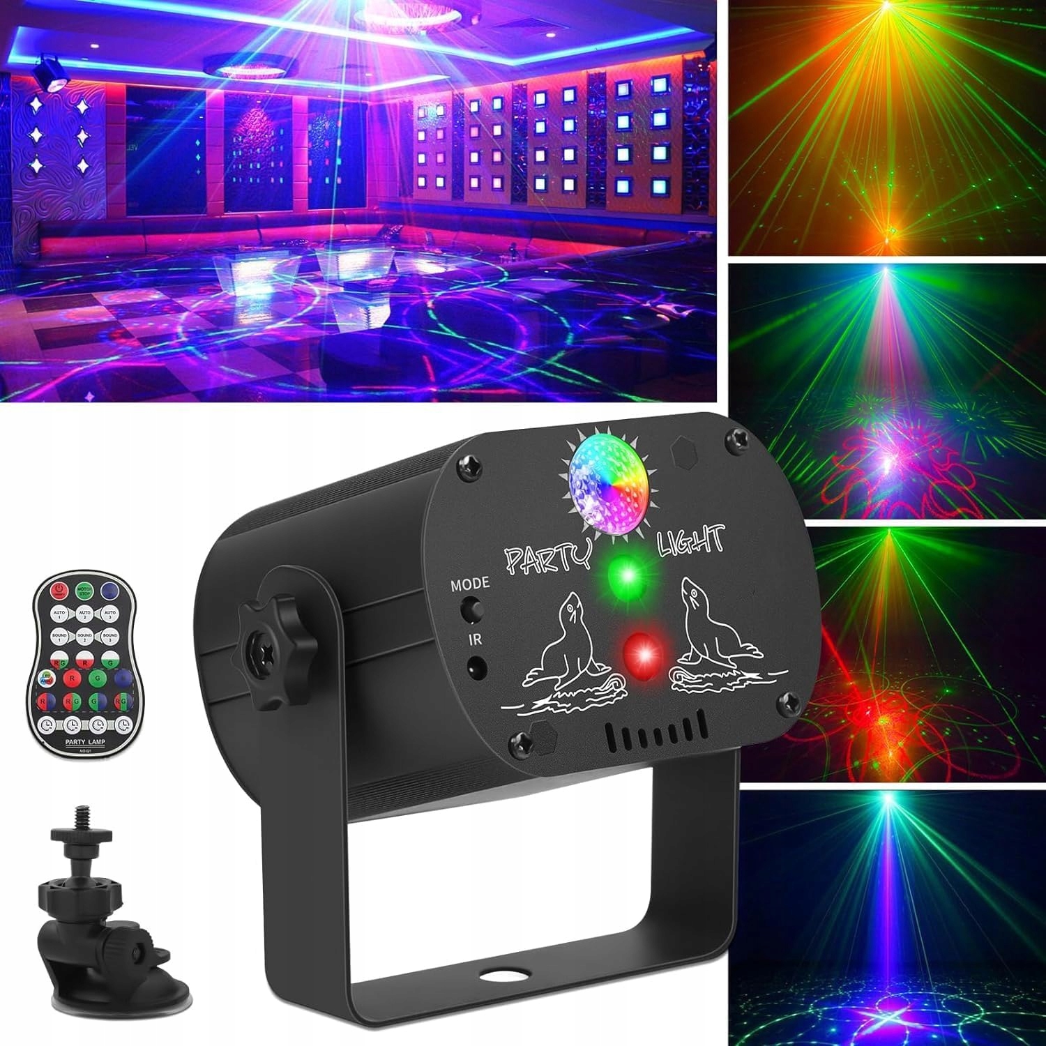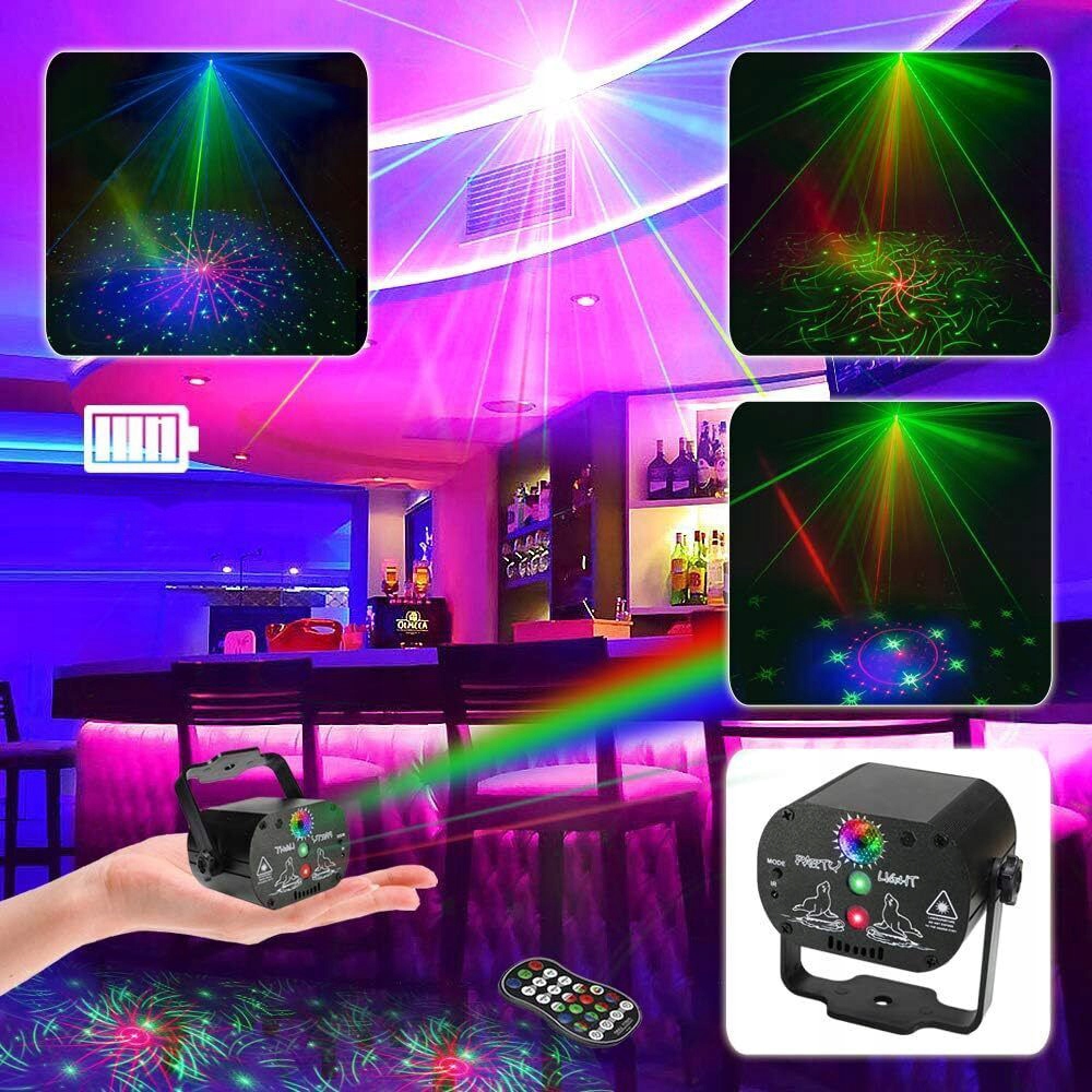 🎉【90 світлових ефектів】 Дискотечна куля пропонує загалом 90 різних комбінованих режимів, які створюють чітке зображення без розмиття, що створює живу атмосферу. 90 комбінацій зображень, 7 колірних фонів (червоний, зелений, синій, червоний і зелений, червоний і синій, синій і зелений, червоний, синій і зелений) і 3 комбінації променів (зелений, червоний, зелений і червоний). Ідеально підходить для створення енергійного та бадьорого настрою на будь-якій вечірці чи заході.