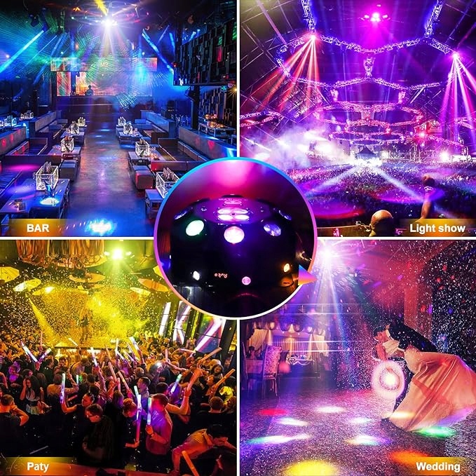- Багатофункціональні ефекти Освітлення:Ліхтарі сцени мають різні світлові ефекти, такі як промені, спалахи, очі бджоли, візерунки тощо. Підключіть 22 світлодіодні кульки та нескінченне обертання, щоб створити різноманітні світлові ефекти сцени, щоб ви могли насолоджуватися вечіркою будь-де та будь-коли.