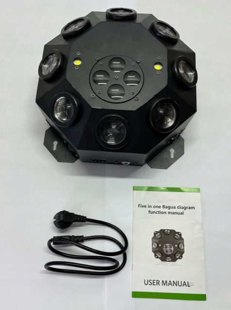 - 22 світлодіодні світлодіодні RGB-ефекти: світлодіодний промінь із високою насиченістю кольорів, сильним чутливістю променя та широкою зоною освітлення містить 8 потужних монохроматичних світлових кульок + 8 монохромних різнокольорових світлових кульок + 4 х 4 в 1 світлодіодних кульок + 2 білі стробоскопічні кульки, які розповсюджуються по всьому об’єкту.