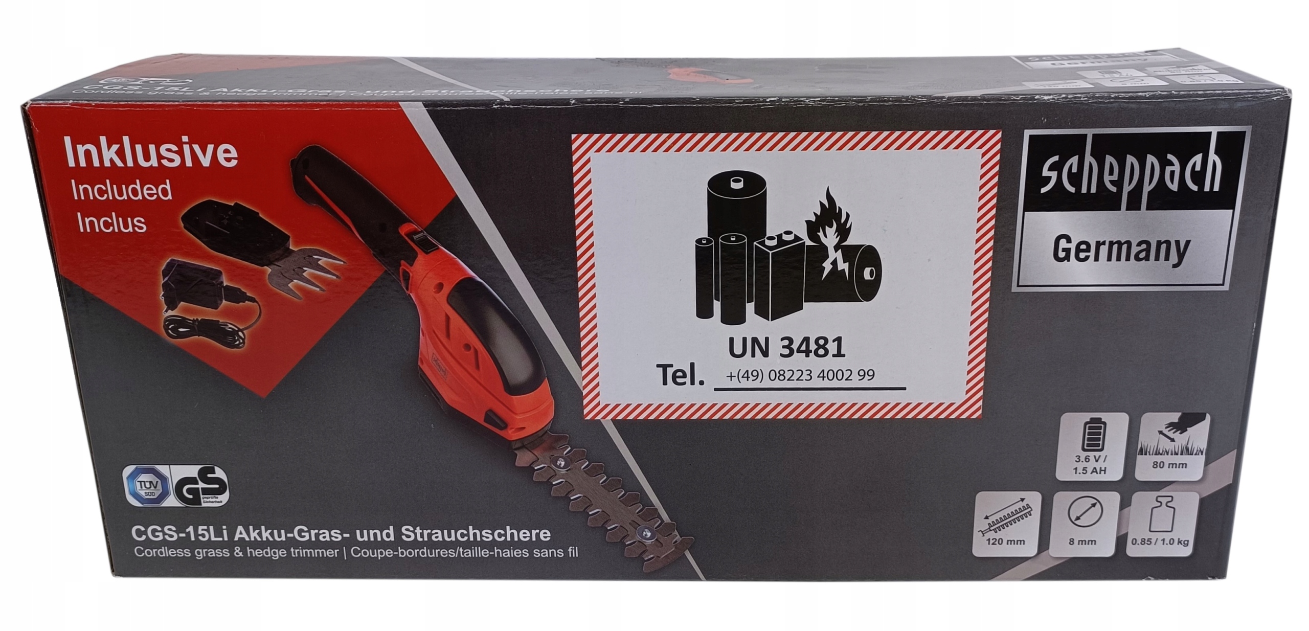 Scheppach CGS акумуляторні ножиці для трави, живої огорожі, кущів, зарядний пристрій