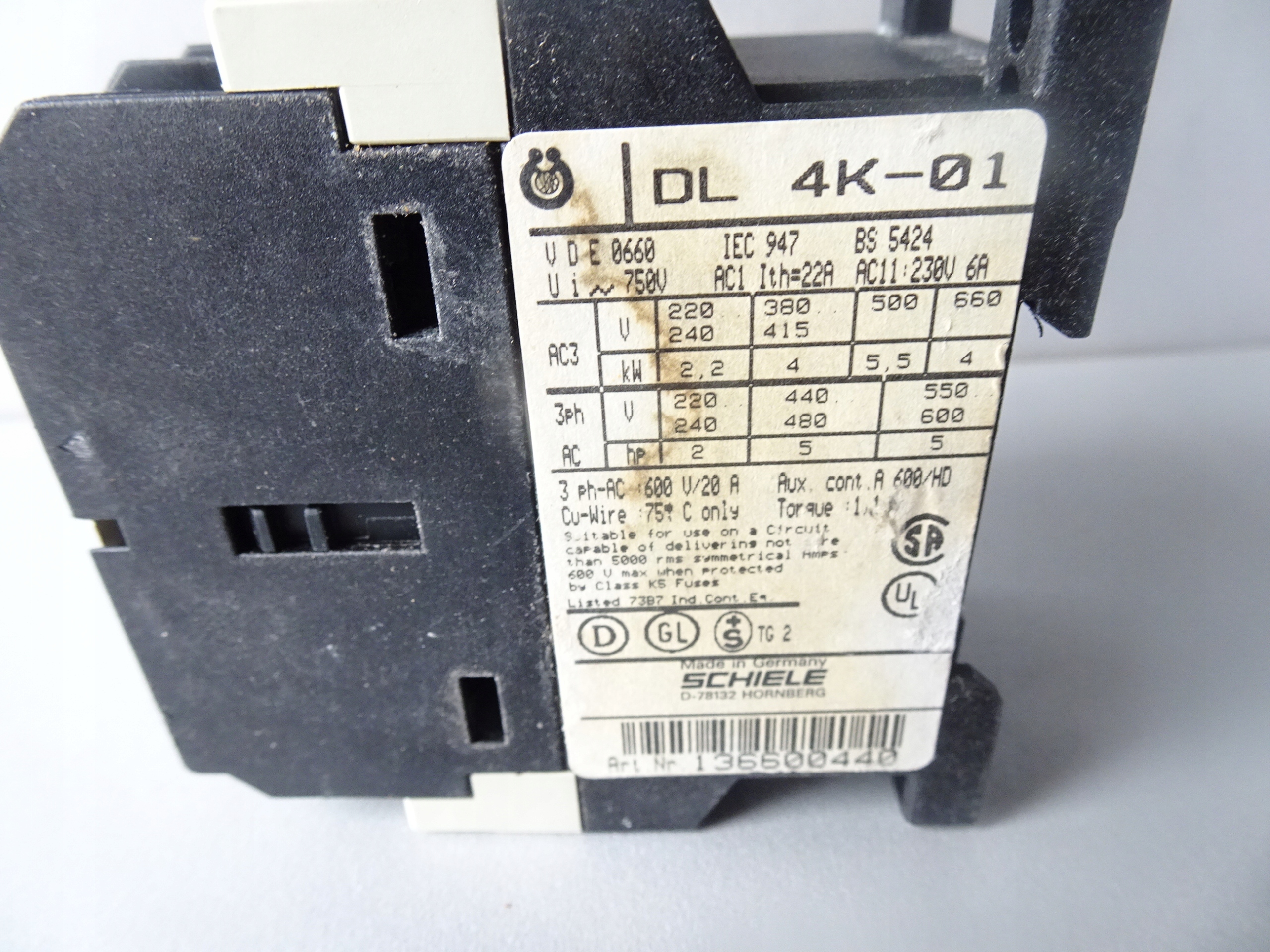 SCHIELE DL 4K-01 КОНТАКТОР 4K/01 L1,L2,L3,NC 22A КОТУШКА 230В