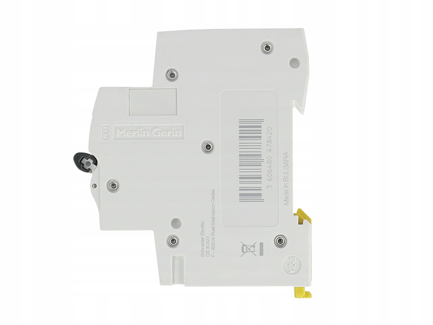 Автоматичний вимикач Schneider Electric серії K60N, номер A9K02325, K60N-C25-3, 3-полюсний (триполюсний), 25A, C характеристика, сила короткого замикання 6kA, забезпечує захист від короткого замикання ланцюги та перевантаження. Автоматичний вимикач, призначений для потреб житлового та подібного будівництва. Подвійні клеми знизу (рейка + кабель). Гофровані клеми підвищують надійність з'єднання. Snap contact - швидкість замикання контакту не залежить від швидкості маневрування важелем камери.