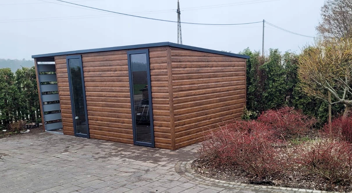 SCHOWEK DOMEK OGRODOWY 4,5X2,5 m + WIATA 1,5X2,5m DRZWI + 2X OKNO - GB415