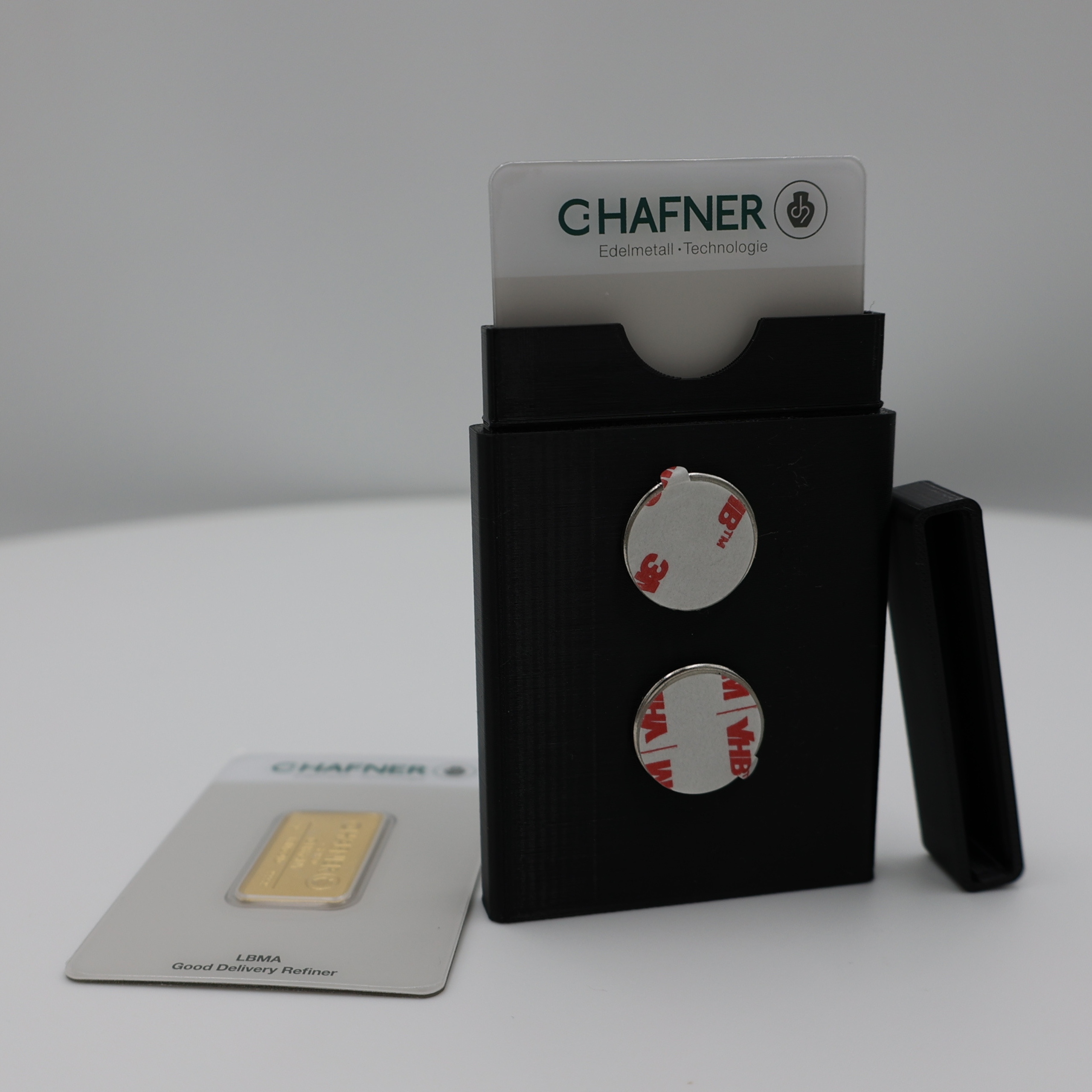 Потурбуйтесь про безпеку своїх цінностей. Практичний магнітний накопичувач, розроблений спеціально для зберігання золотих злитків. Компактний, міцний і його легко сховати — ідеально підходить для домашнього використання, офісу чи подорожей.
