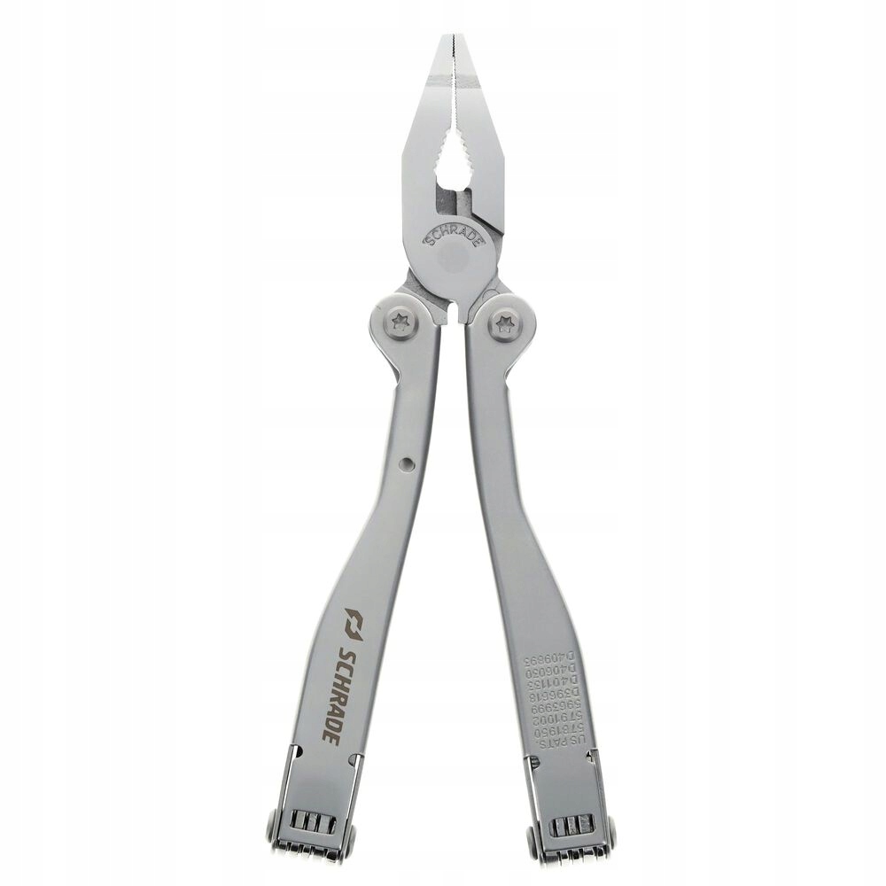 Multitool Schrade, з до 20 функцій, був розроблений для людей, які потребують повного набору інструментів в одному місці, не носять важкої панелі інструментів. Суцільна конструкція була зроблена повністю з нержавіючої сталі 2CR, що забезпечує довговічність та надійність.