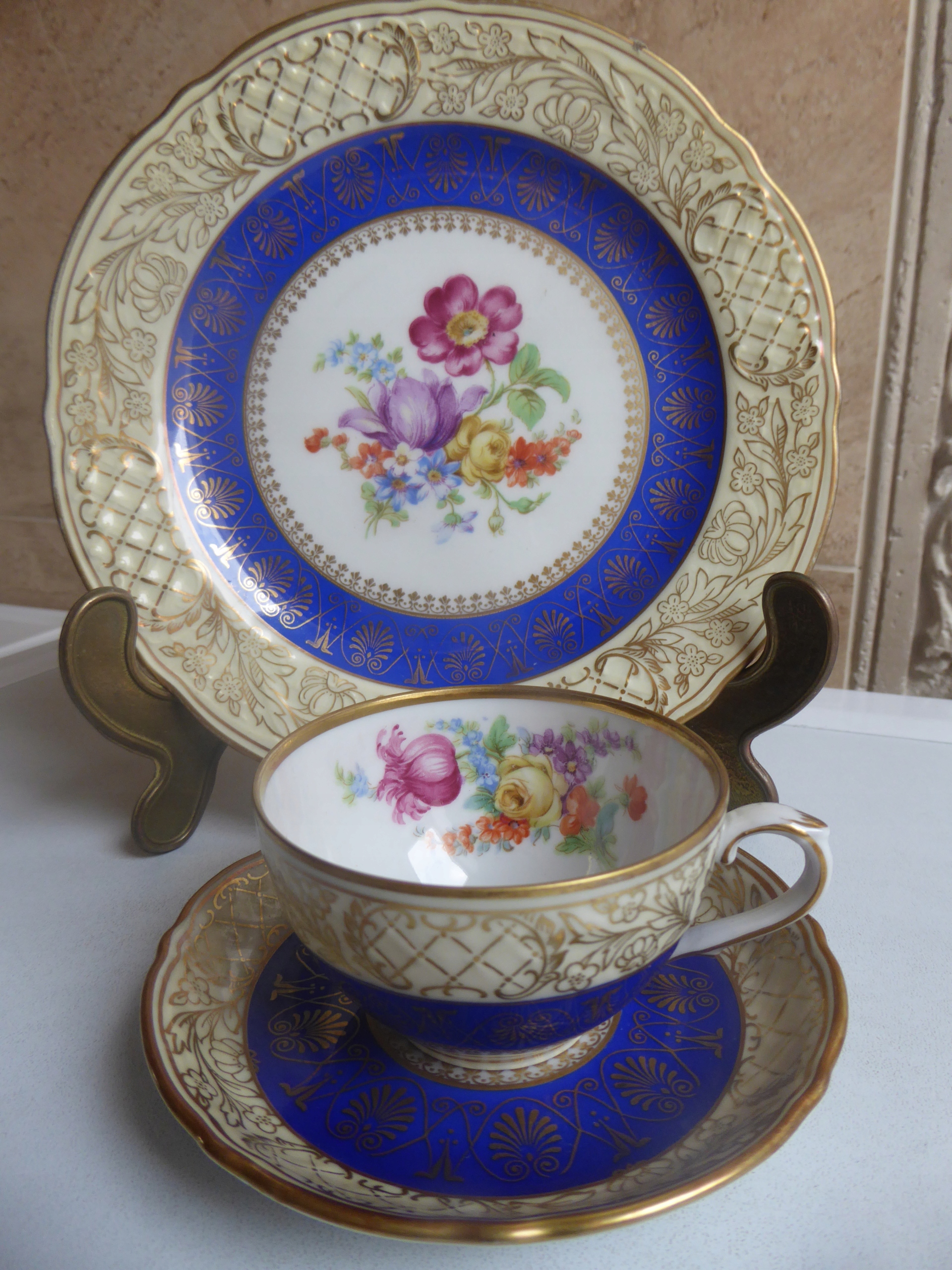 SCHUMANN piękne stare TRIO Mocca kobalt, złocenia