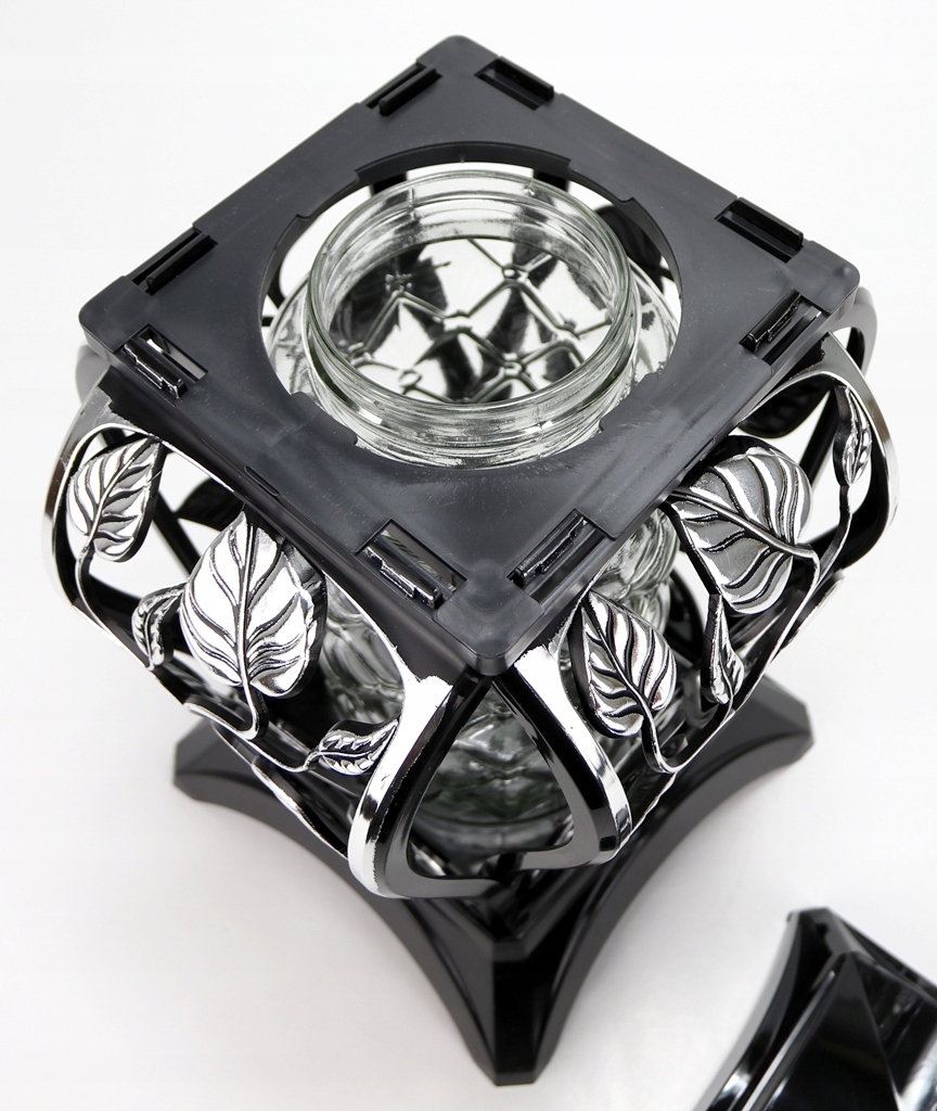 - Внутрішня банка виготовлена з густого скла з підкладеним малюнком Каро, який прекрасно відволікає світло свічки