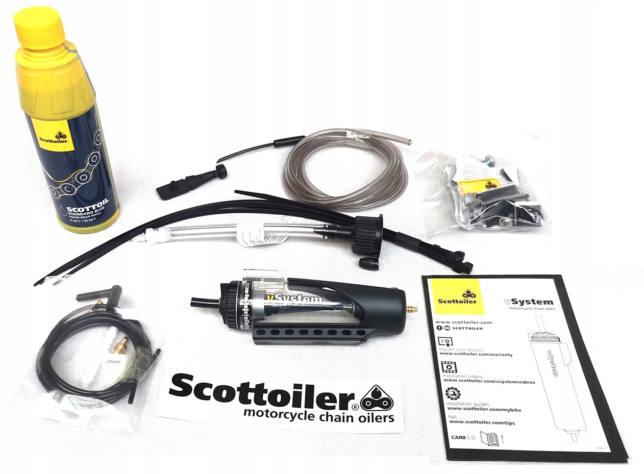 Scottoiler vSystem — це універсальний, простий в установці пристрій для постійного змащування ланцюга мотоцикла під час їзди. Він працює за простим принципом: нафта витікає з пласта під дією сили тяжіння. Система починає працювати автоматично при запуску мотоцикла. Клапан, керований вакуумом, створеним двигуном мотоцикла, забезпечує подачу відповідної кількості масла. Автоматична мотоциклетна мастилка Scottoiler vSystem не знижує потужність мотоцикла та не впливає на ефективність двигуна, оскільки працює за принципом вакууму.
