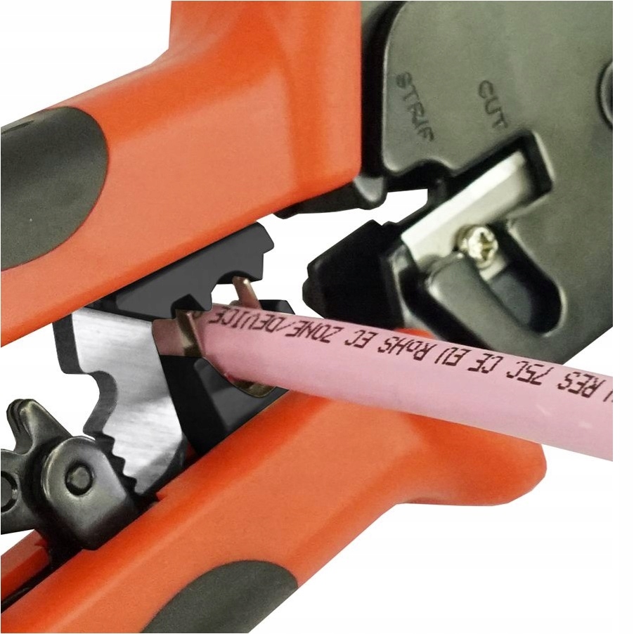 - Універсальний затискач для без покриття та екранованих роз'ємів RJ45 WE/SS (8p8c) та проходження (має вбудоване лезо, що відрізають зайві вени).