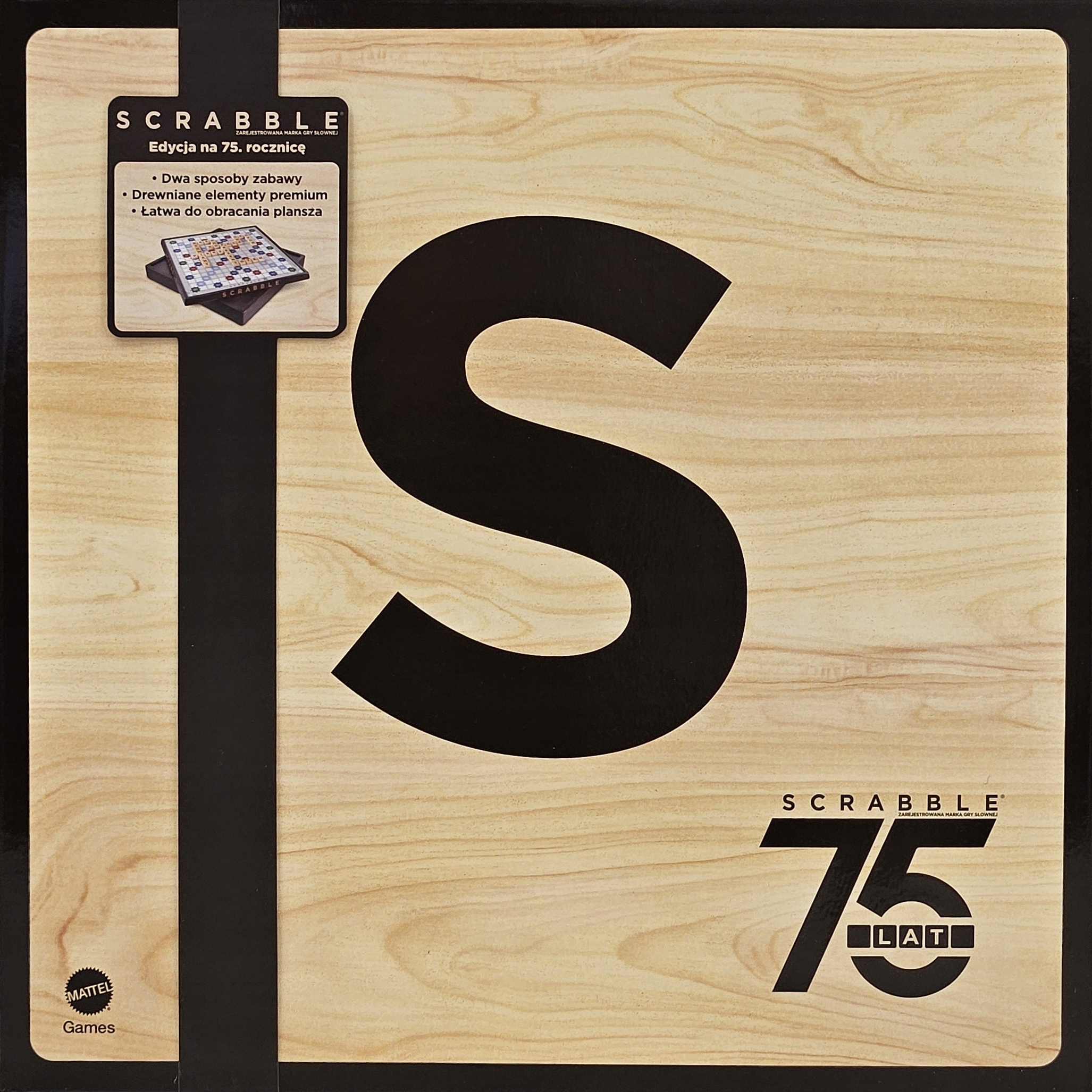 Scrabble 75 lat - drewniana edycja polska - duża, obrotowa plansza