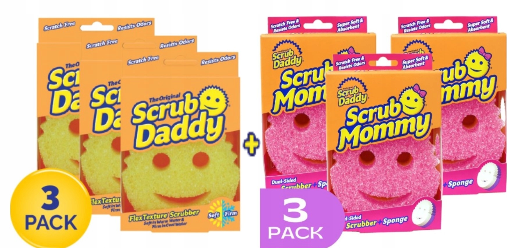 SCRUB MOMMY PINK 3 PACK + SCRUB DADDY ORIGINAL 3 PACK