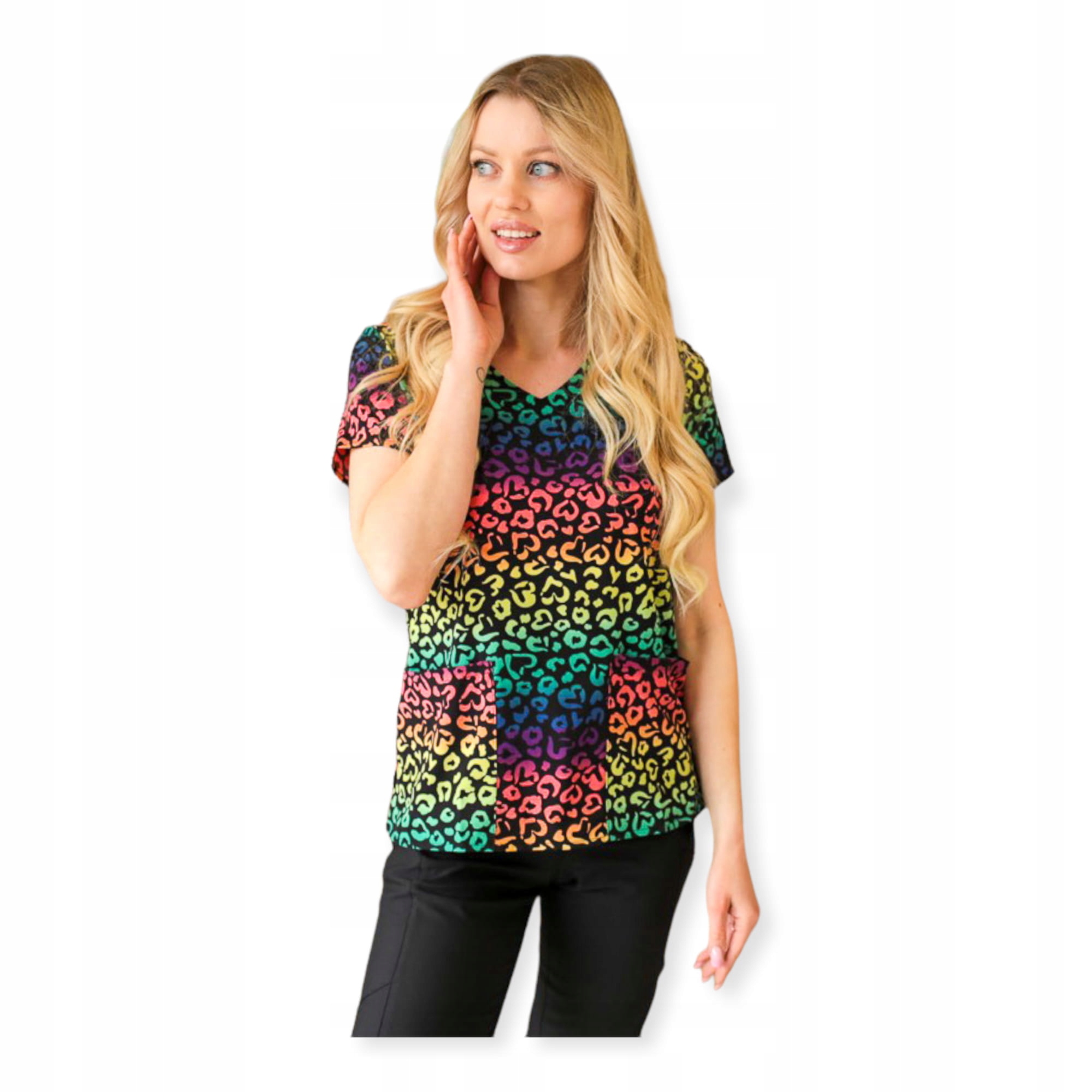 Чорний жіночий медичний світшот з різнокольоровими райдужними плямами забезпечить медичним працівникам повний комфорт під час виконання службових обов'язків. Дуже важливо, щоб одяг був повністю адаптований до умов, в яких працює працівник. Жіноча медична толстовка виготовлена з не мнущогося якісного полістрейчу, який є дуже функціональним матеріалом. Дозволяє швидко висихати і характеризується високою еластичністю, що робить його комфортним у носінні. Також важливо, щоб після прання він зберігав первісну форму. Медичний світшот Stay Passitive також не вимагає прасування. Спереду він оснащений двома дуже місткими кишенями, в які можна помістити необхідні аксесуари. Світшот із різнокольоровими райдужними плямами забезпечить привабливий, але водночас професійний вигляд персоналу.