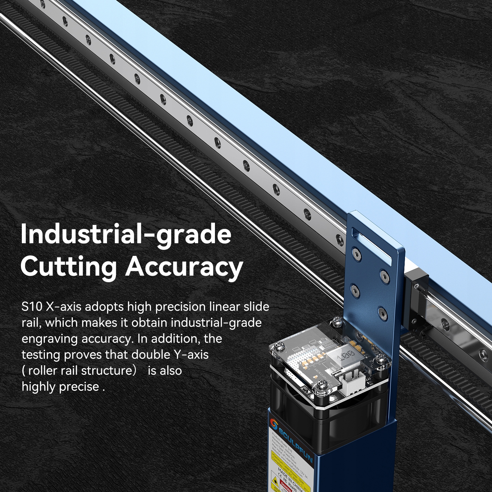 Вихідну потужність лазера S10 збільшено до 10 Вт, що вдвічі більше, ніж у S9. Але S10 отримує такий самий ультратонкий лазерний промінь 0,08 мм, що й S9, що означає, що S10 має вищу щільність енергії, краще проникнення різання та можливості гравіювання.