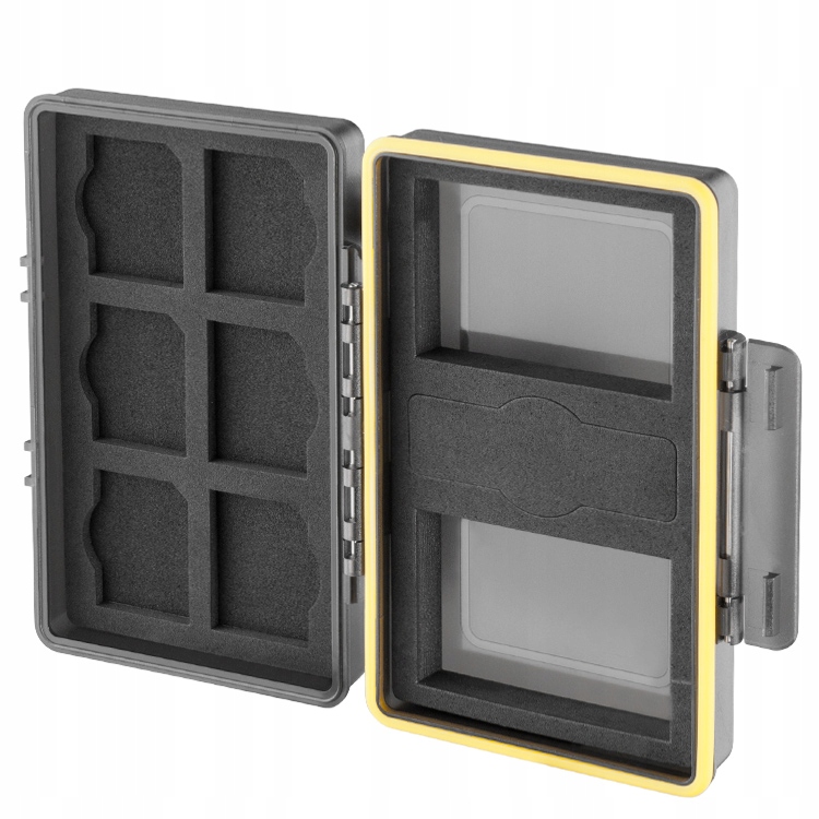 Універсальний корпус акумулятора та картки пам'яті виготовлені з високоякісного полікарбонату. Матеріал, що використовується з прокладкою силікону, створює міцну та водонепроникну конструкцію. Інтер'єр вистелений еластичною піною з порожнинами для карт пам'яті та акумулятором, додатково захищаючи зберігаються предмети від поштовху та взаємного удару. SD/SDHC/SDXC