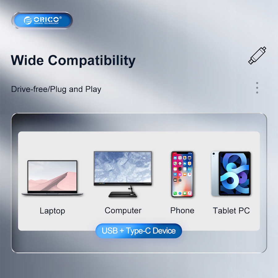 Зручно керуйте своїми файлами. Зчитувач карт пам'яті Orico підтримує різні типи карт SD і TF.