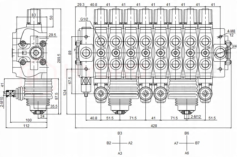 Усі секції, адаптовані для управління подвійними або односторонніми циліндрами та двигунами в одному або двох напрямках.
