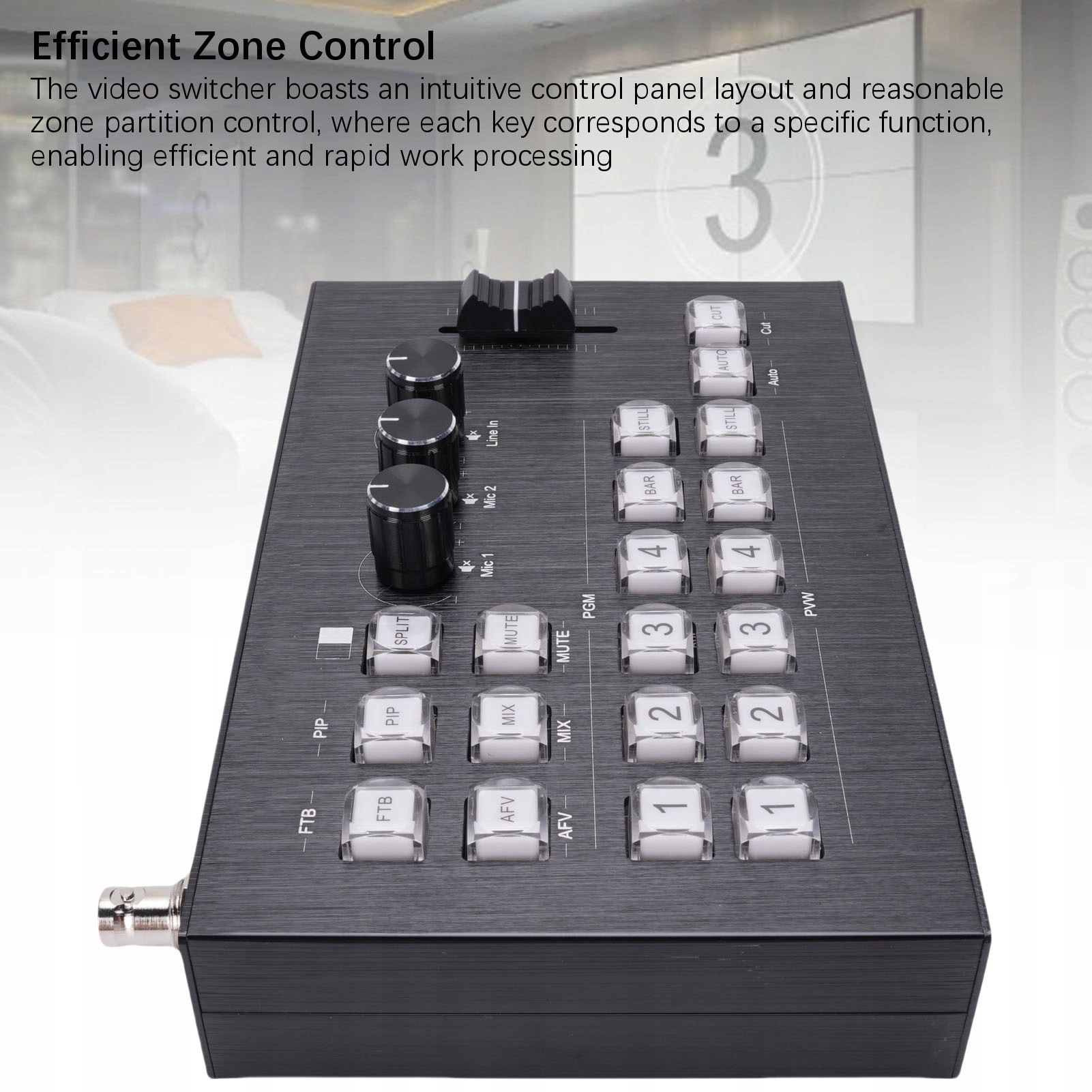 3. Ефективне керування зонами: перемикач відео має інтуїтивно зрозумілий макет панелі керування та розумне керування поділом зон, де кожна клавіша відповідає певній функції, що забезпечує ефективну та швидку обробку роботи