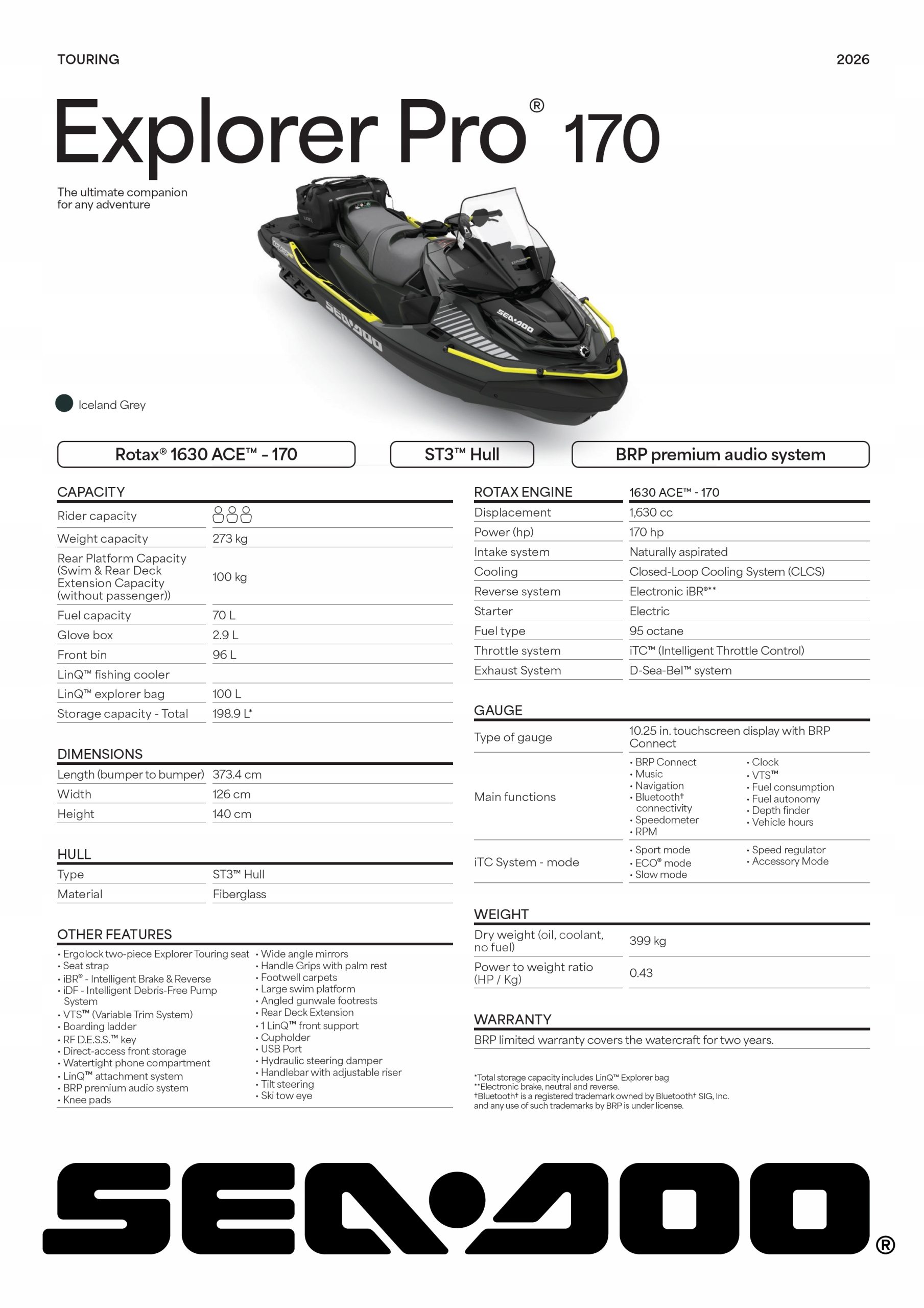 Sea Doo Explorer Pro 170 IDF Audio Watercraft Model 2026