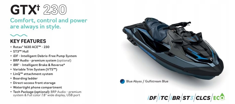 Sea-Doo GTX 230 iDF Blue Abyss/ Gulfstream Blue 2025