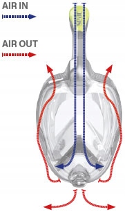 Почуття втоми та накопичення СО2 у дихальній системі може призвести до потенційно серйозних наслідків, навіть під час низьких фізичних навантажень, таких як пірнати з трубою. Ось чому SEAC попереджає два основні принципи при розробці повних масок для перекусів:
