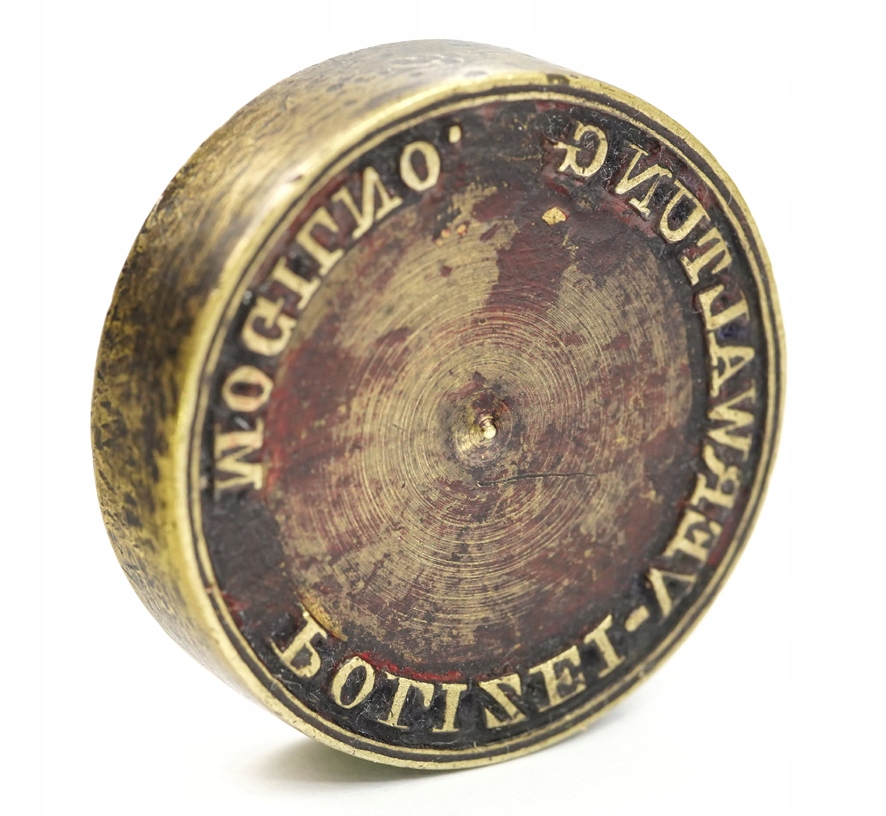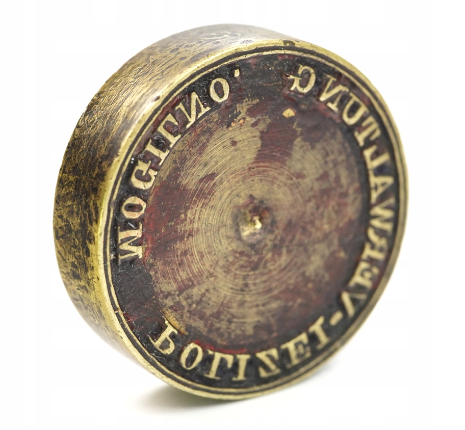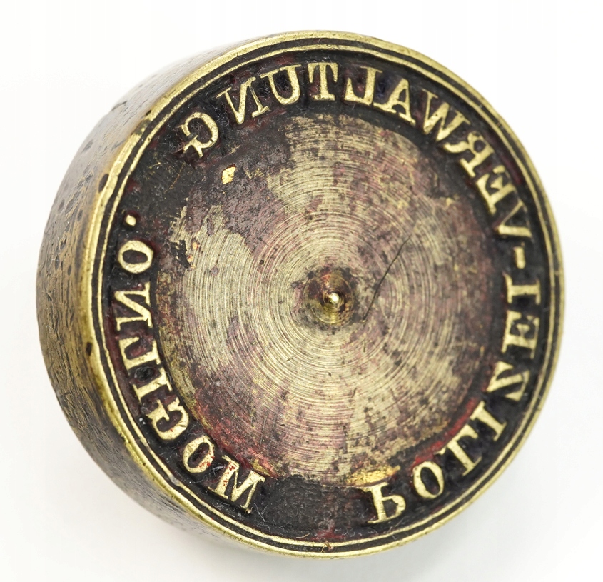 Оригінальна, дуже гарна, дуже рідкісна довоєнна поліцейська печатка, заглушка для печатки / печатка - поліція, поліцейська адміністрація, Polizei Verwaltung Mogilno, приблизно 1900 - 1910 рр., латунь, розмір: загальна висота 19 мм, діаметр відтиску 34 мм, Стан: Дуже хороший - без пошкоджень, натуральна ніжна патина. Рекомендую, оригінальна, рідкісна річ за доступною ціною. Надзвичайно цікавий рідкісний оригінальний предмет. Стан добре видно на фото в описі аукціону.