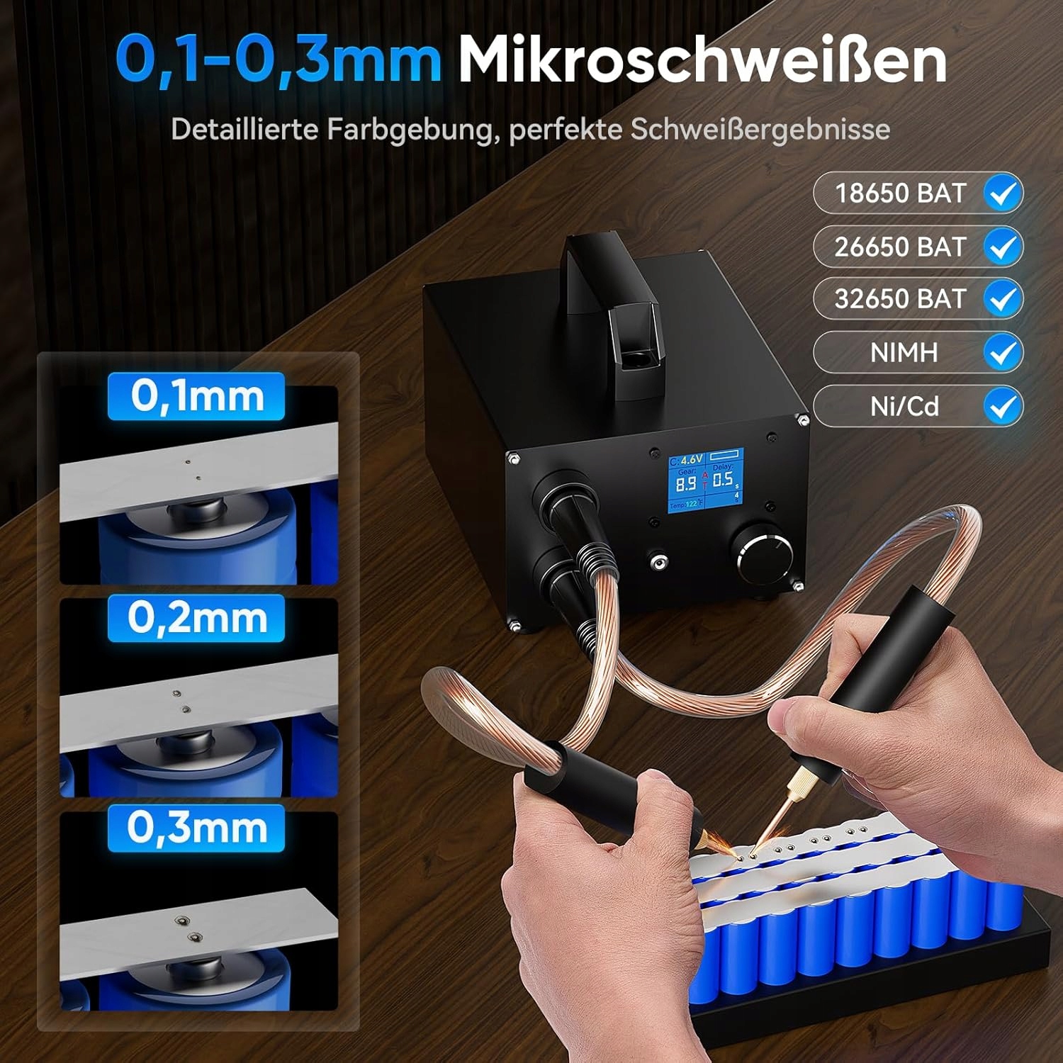 Мікро вітання 0,1-0,3 мм: Зварювальна машина SE-223 оснащена двома суперпрозорими конденсаторами Farad з ємністю до 3000 А з максимум 1400 А, 25,0 передач з РК-дисплеєм. Може бути використаний для зварювання практичних ремінців нікелю до 0,25 мм, максимальна зварювання до 0,3 мм, чистий нікельський лист у діапазоні 0,15 мм.