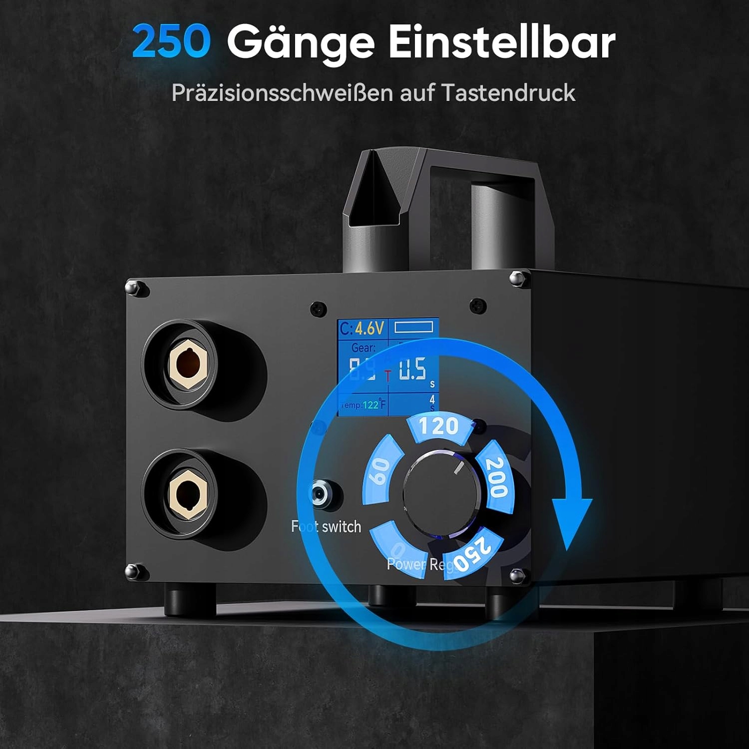 Налаштування 1-25 рівнів: Наша машина для зварювання точки з 25,0 регулювання виходу, яка може бути зручно відрегулювати, повернувши кнопку (діапазон 1-25). На відміну від інших точок зварювальників, наша точність точна до 0,1 цифр. Точність зварювання точки може бути встановлена відповідно до різних потреб, тим точніше налаштування, тим ідеальним ефектом зварювання точки.