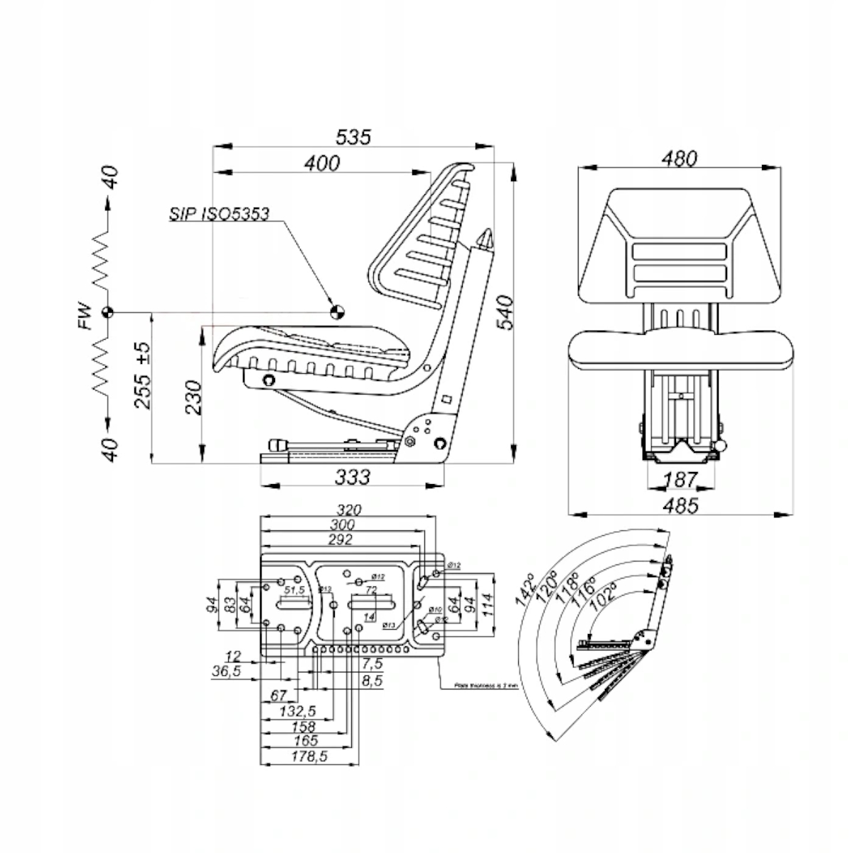 ✅ Ursus / Massey Ferguson 235, 255, 2812, 3512, 3514, 4512, 4514 (УВАГА! в тракторах, які мають кронштейн сидіння зі скосом, потрібно змінити кут нахилу спинки на 120 градусів)