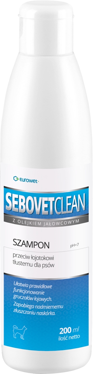 Себовет - Клін - ветеринарна очисна дермокосметика, спеціально адаптована для собак з симптомами жирної себореї. Ялівцевий дьоготь, що міститься в шампуні, впливає на правильну роботу сальних залоз і перешкоджає надмірному злущуванню епідермісу.