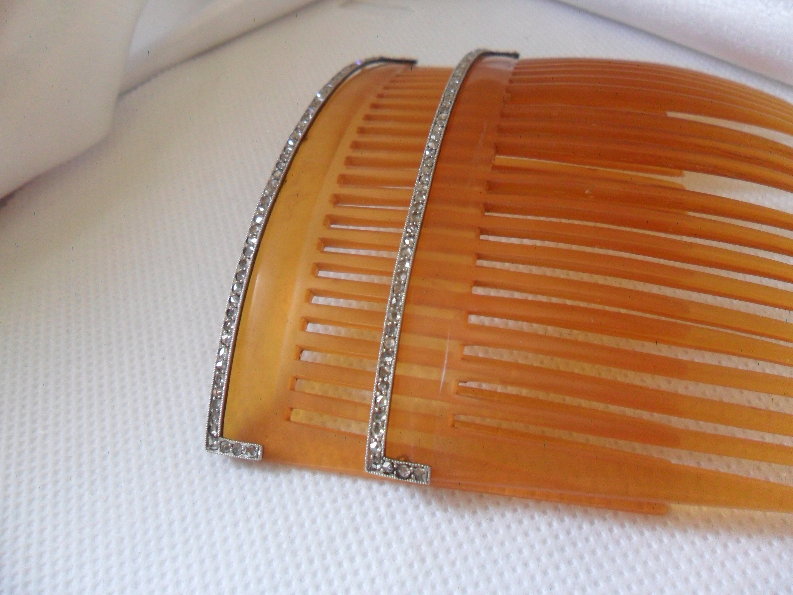 Secesja - Komplet Grzebieni w Platynie z Diamentami w Oryginalnym Etui.