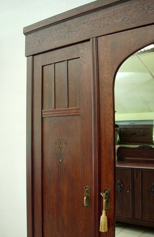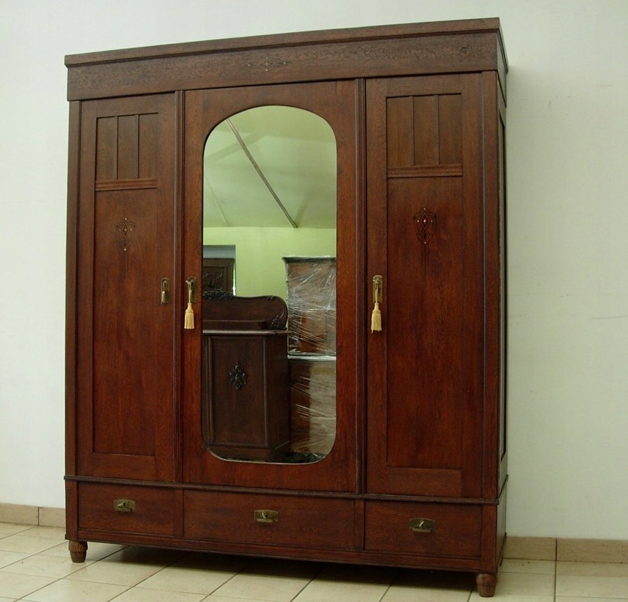 SECESYJNA ORYGINALNA DĘBOWA SZAFA GARDEROBIANA Z LUSTREM