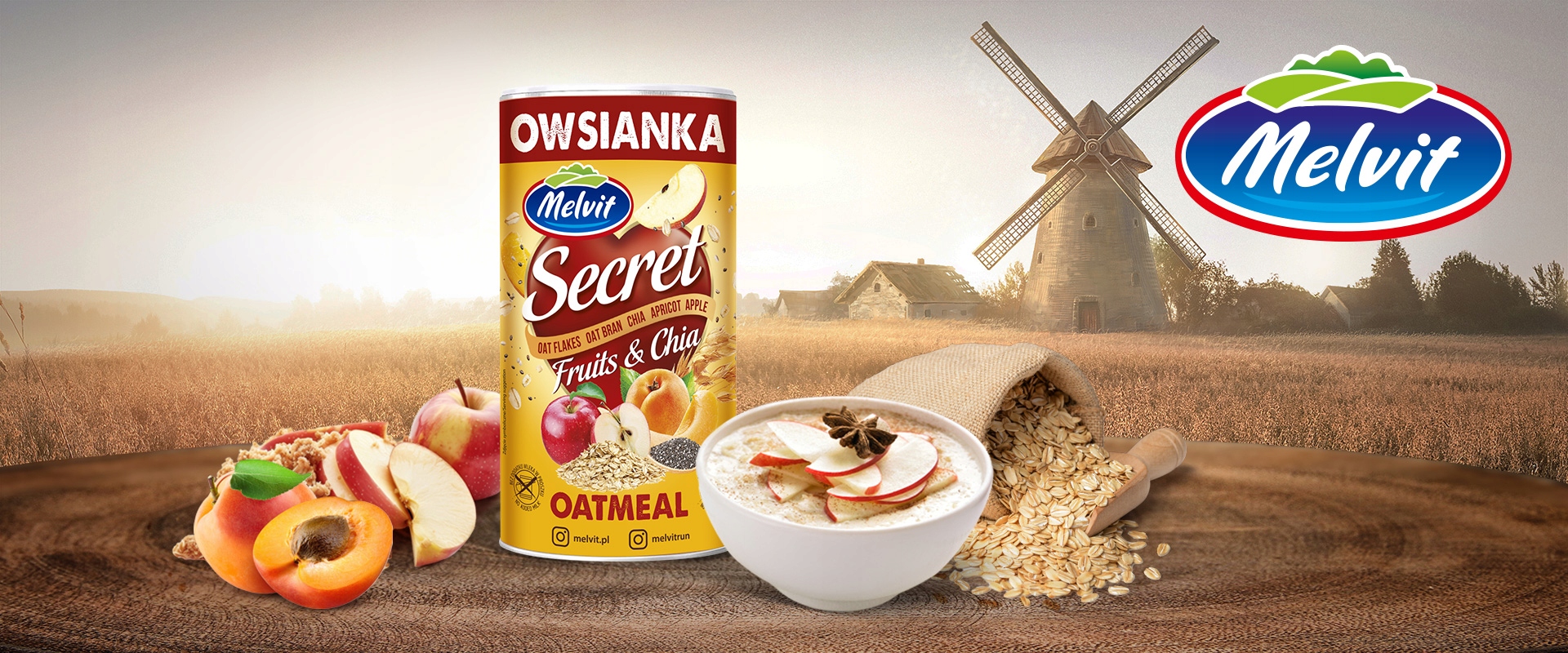 Melvit представляє новий продукт – Secret Fitness Oatmeal with Chia and Fruit в новому, супер зручному тюбику 500 грам! Відкрийте тюбик і відкрийте для себе секретні надздібності сніданку, які додадуть вам енергії на цілий день!
