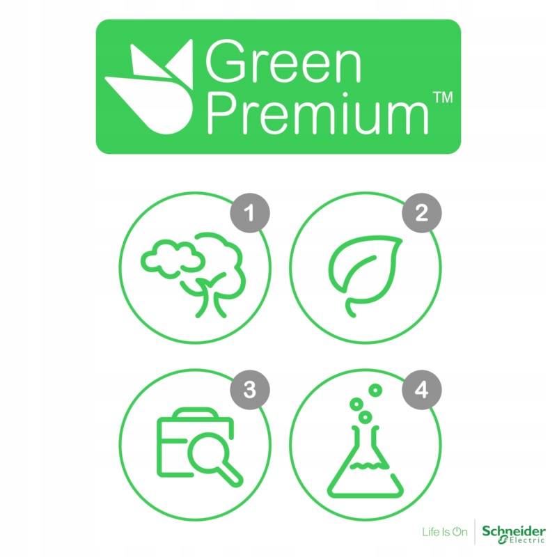 4лейбл зелений преміум - це зобов'язання компанії Schneider Electric забезпечити продукцію з найвищим екологічним у своєму класі. Це означає: