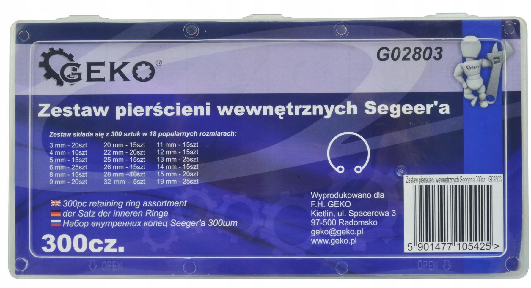 Універсальний набір хомутів для кілець Seger з пружинної сталі. Набір необхідний в професійних автомобільних і автомобільних майстернях і ремонтних службах. Міцний, стійкий до механічних пошкоджень. Затискачі Seger розміщені в практичній коробці з відділеннями.