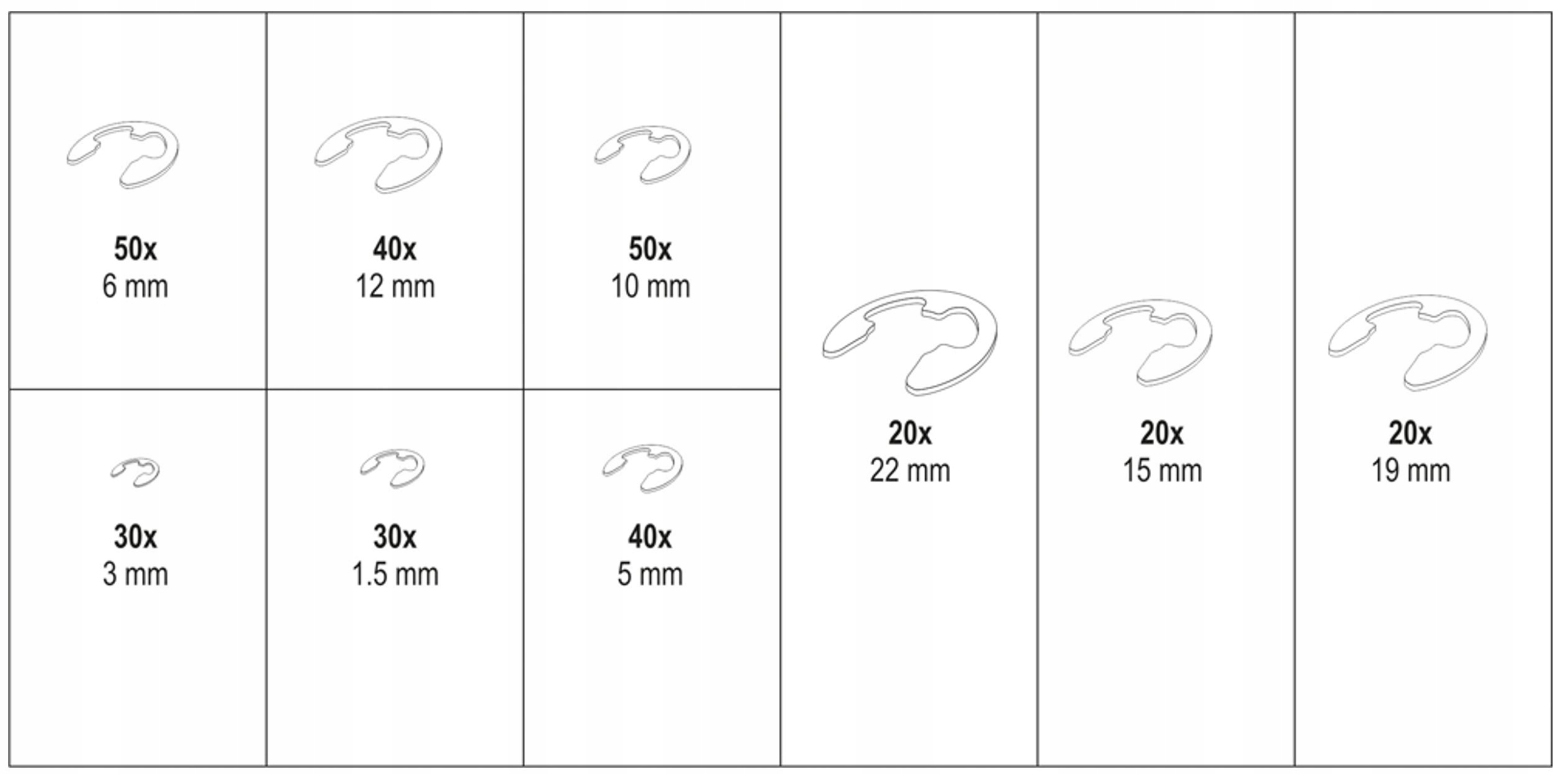 - Закріплювальні кільця типу E, тобто для кріплення на ролику