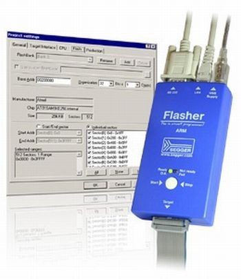 Flasher Arm -це інструмент для програмування для мікроконтролерів із вбудованим -in з вбудованим -in із зовнішньою флеш -пам'яттю або ядром руки. Flasher Arm розроблений для програмування цільових програм за допомогою програмного забезпечення J-Flash або як незалежний програміст. Крім того, Flasher Arm має всі функції програміста J-Link. Програміст підключається через інтерфейс USB, Ethernet або RS232 з ПК. It works with Microsoft Windows 2000, Windows XP, Windows 2003, Windows Vista or Windows 7.