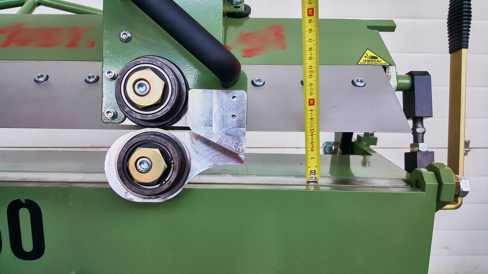 - Магнітний нижній промінь - (додаткове обладнання) - Магніти, встановлені на нижньому промені "Утримуйте" металевий лист у заданому положенні. Завдяки їм вузькі смуги листового металу не випадають з машини.
