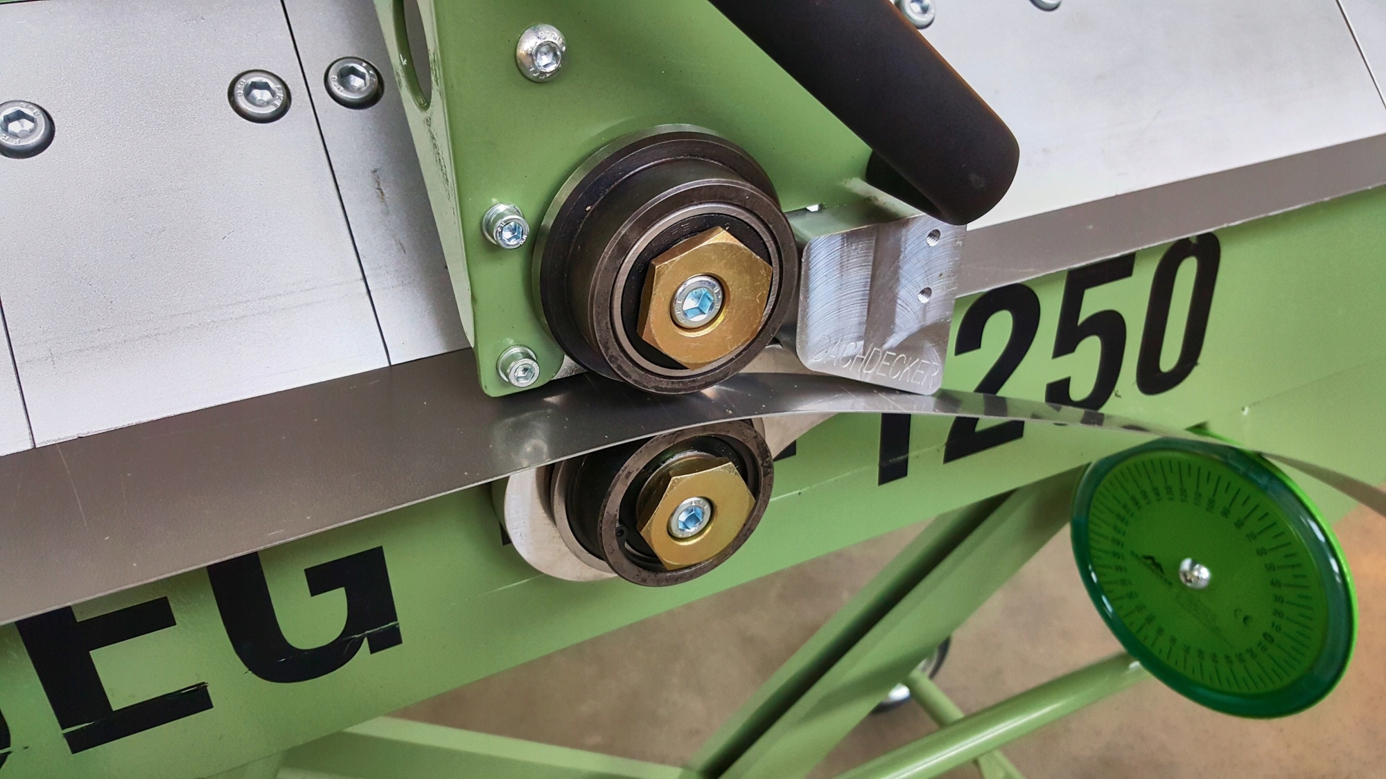 -no Диск - (додаткове обладнання) - Клинок ножа (кільця) виготовлено з високої сталі -сплаву (макс. Товщина розрізаного оцинкованого сталевого листа становить 0,80 мм). Довговічність ножів становить близько 25 км вирізаного аркуша 0,5 мм. Можна кілька разів заточувати ножі. Конструкція ножа дуже жорстка, виготовлена зі сталі, покритої порошковим лакам. Вага - 5 кг. Також можна придбати самі диски у випадку старих.